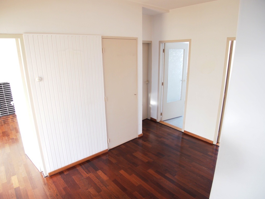 Gesloten portiek met bellentableau, brievenbussen en trap naar de bovengelegen verdiepingen en de kelder. Entree, ruime hal (3,7 x 2,2m) met toegang tot badkamer, apart toilet, meterkast en alle overige vertrekken. Woon/eetkamer (10,3 x 3,9/3,2m) voorzien van diverse inbouwkasten en toegang tot beide balkons, voorslaapkamer (3,0 x 2,4m) met toegang tot het balkon aan de voorzijde (zuidoost) en inbouwkast, achterslaapkamer (3,6 x 3,2m) met inbouwkast, keuken (3,5 x 1,8m) met wasmachine aansluiting en toegang tot het balkon aan de achterzijde (noordwest).