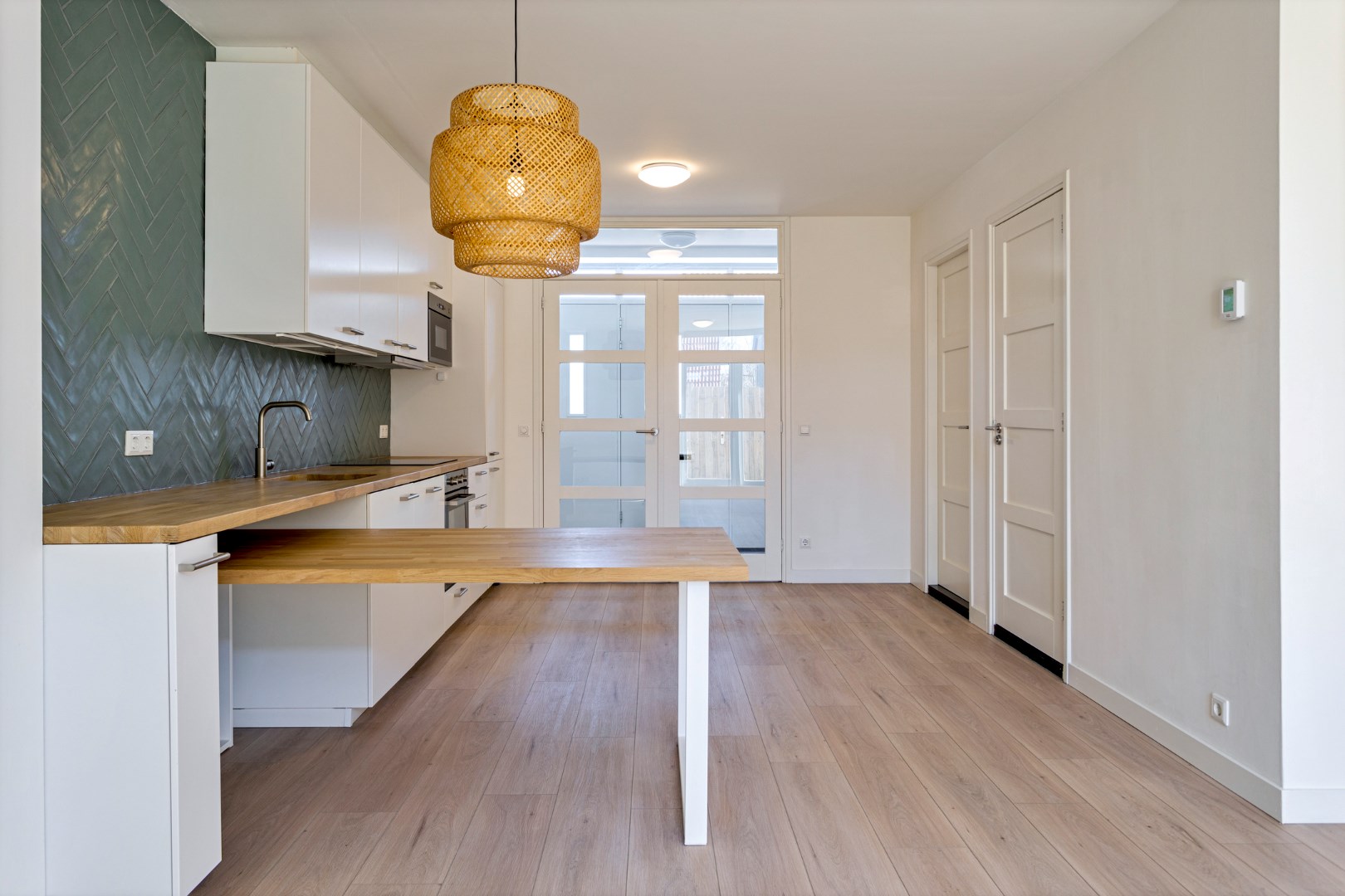 Ruime entree met openslaande deuren naar het woongedeelte.