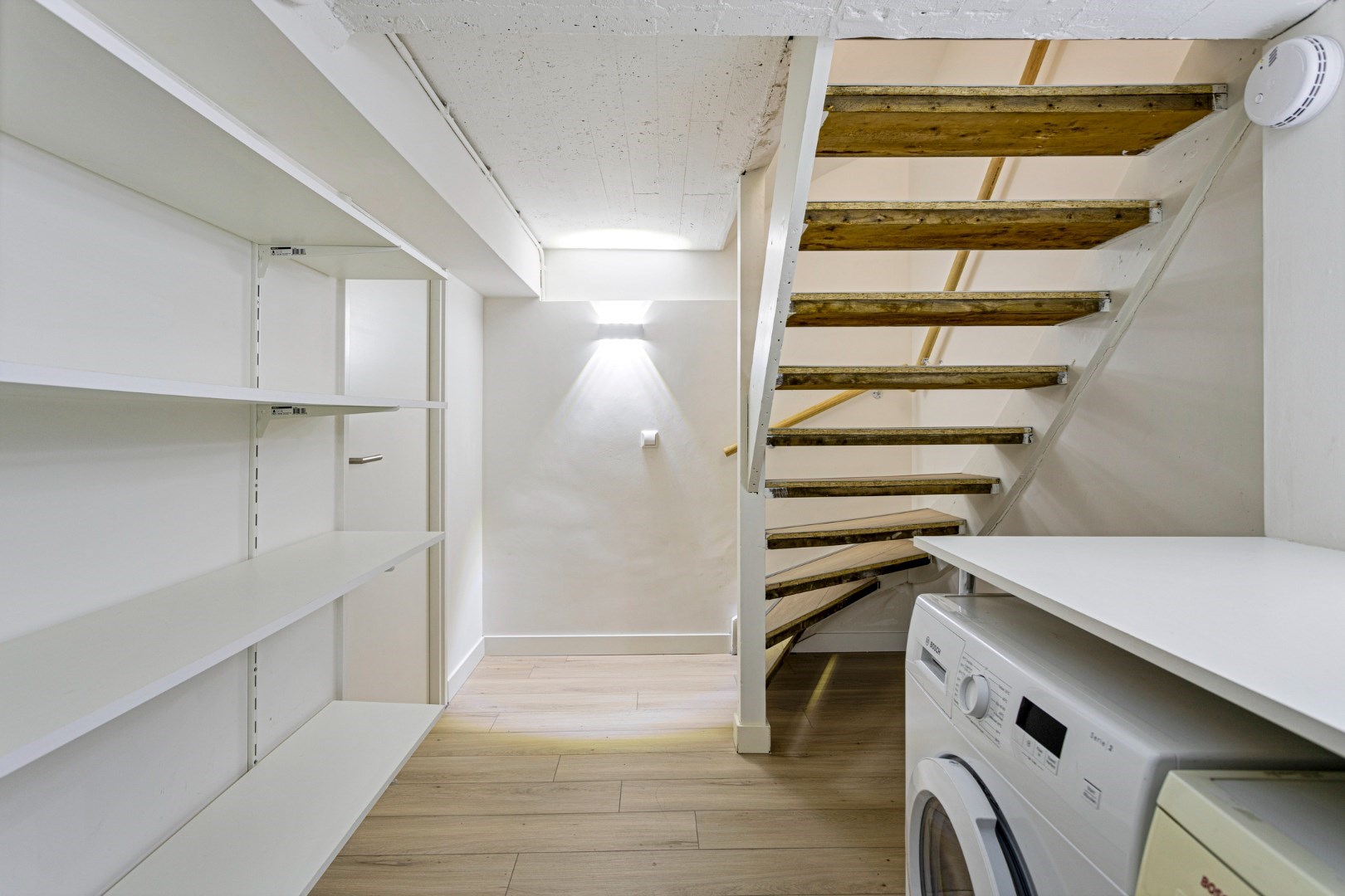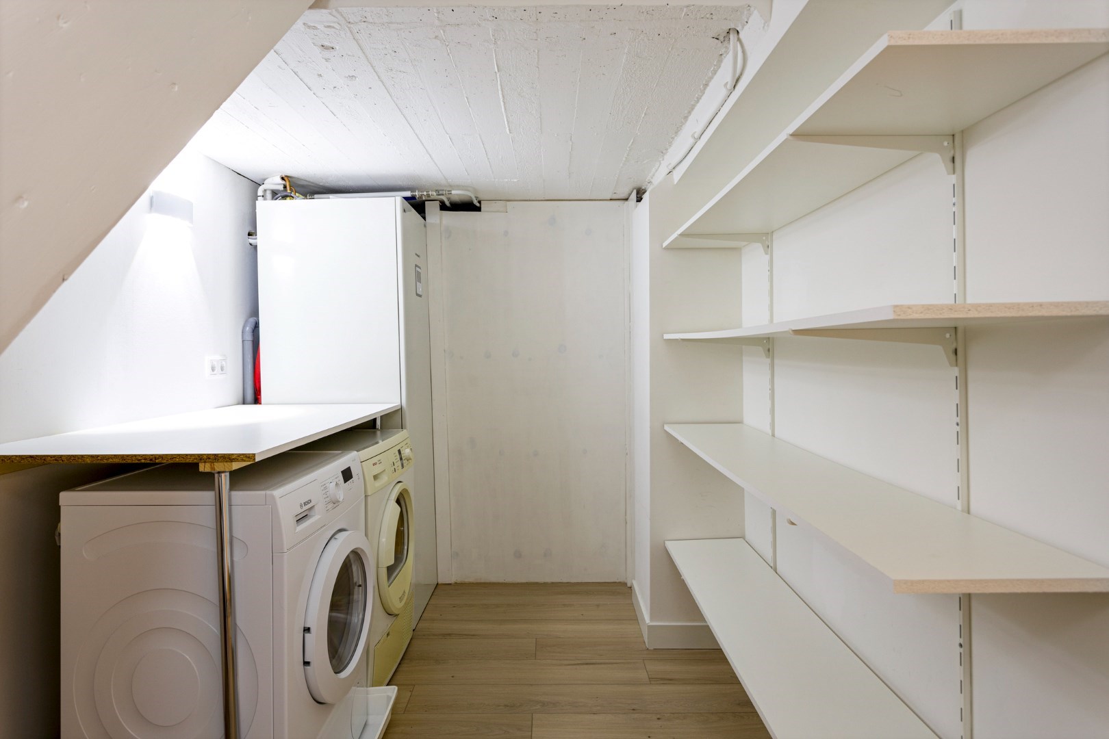 In het souterrain bevinden zich een ruimte voor de wasmachine en de droger en een derde slaapkamer.