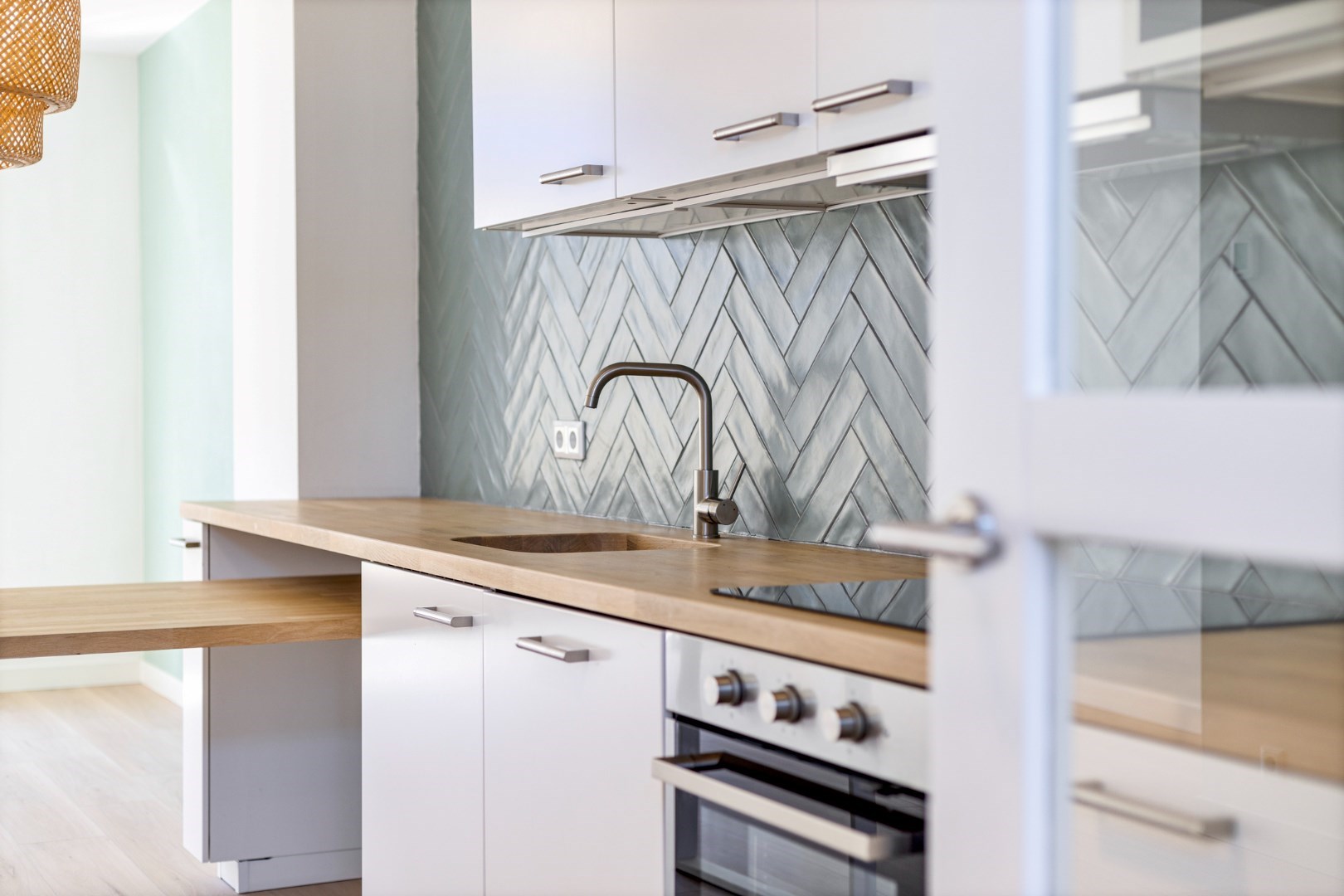 Het woongedeelte bestaat uit een moderne witte keuken voorzien van o.a. een inductie kookplaat, vaatwasser, grote koel-/vriescombinatie, oven en een magnetron.
