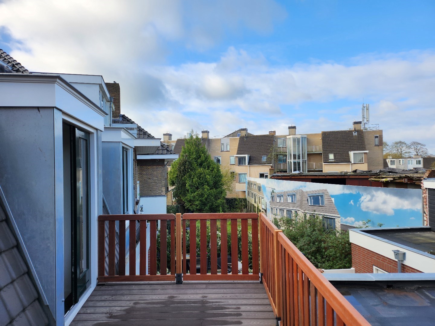 Vanuit de woonkamer is er toegang tot het dakterras, waar u kunt genieten van de middag en avondzon.