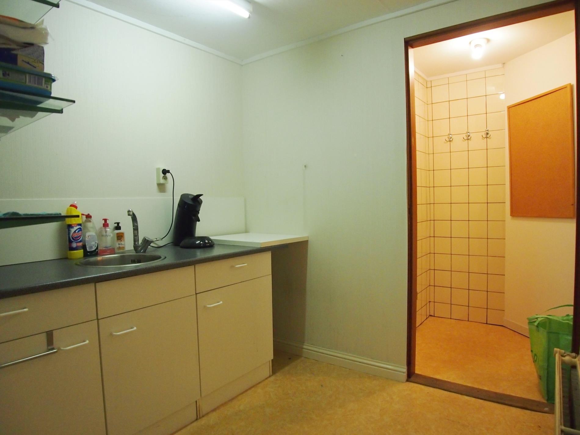 Er is een keuken voorzien van een eenvoudig keukenblok.