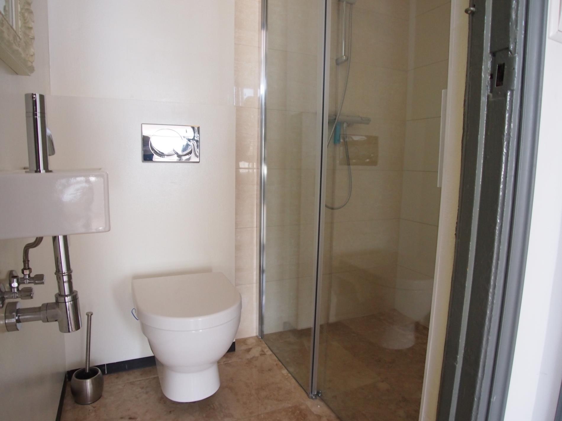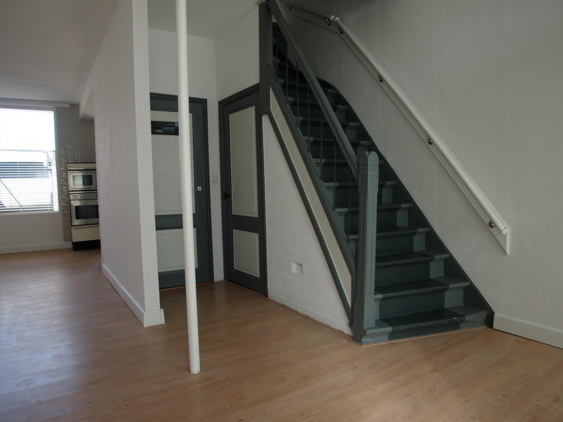 Tegenover de hal heeft u de trap naar de eerste verdieping. Onder de trap bevind zich een ruime kelderkast en naast de trap bevind zich een modern toilet.