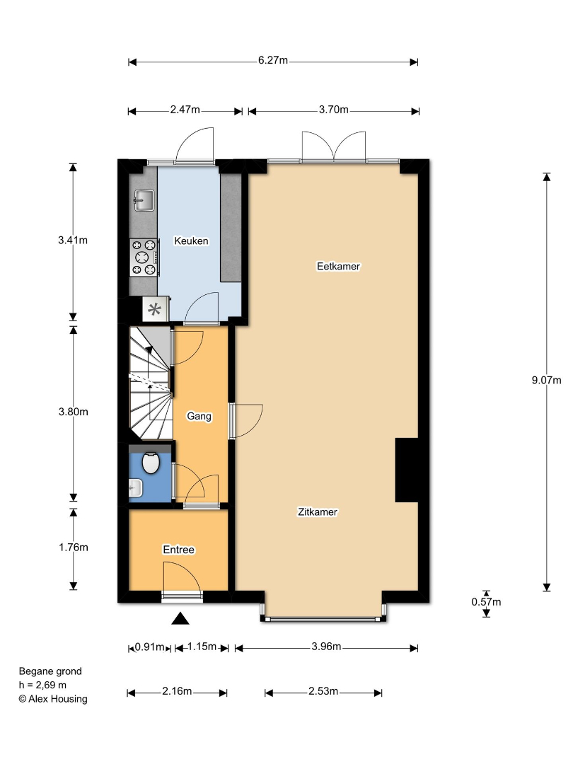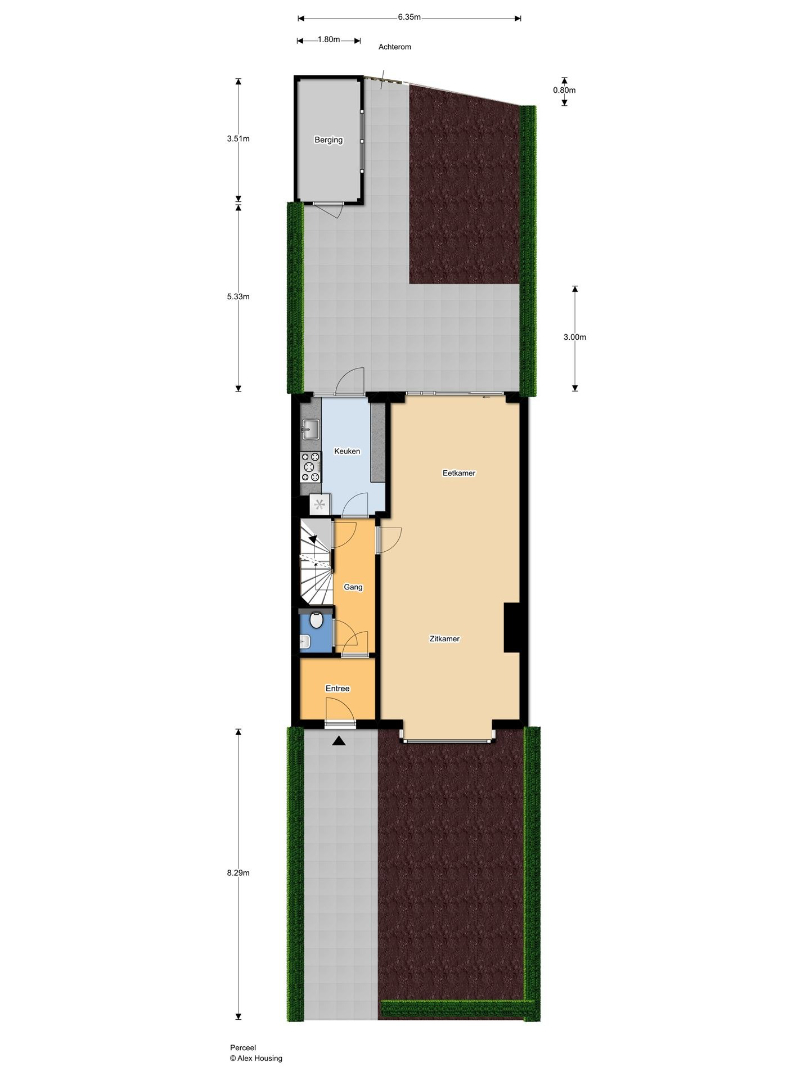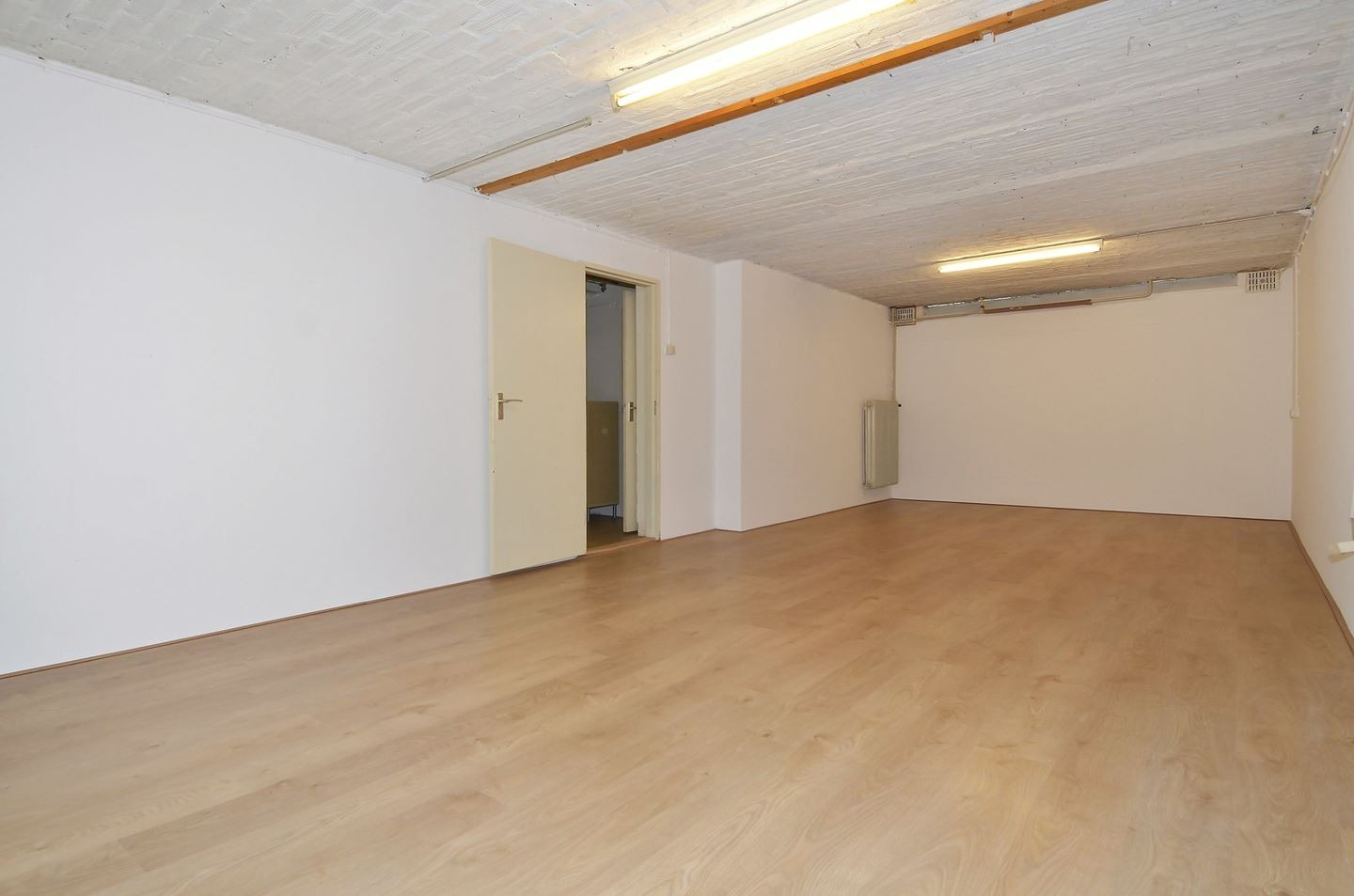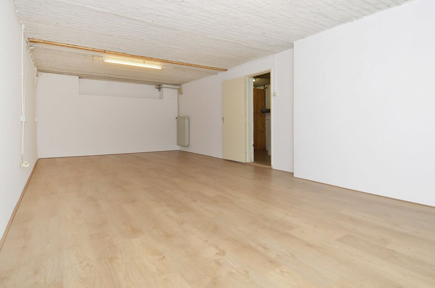 Entree met garderobe, hal met gastentoilet, woon / eetkamer met houten vloer en open haard en openslaande deuren naar de achtertuin, volledig ingerichte keuken met toegang tot de achtertuin, volledig onderkelderd met wasruimte, berging en ruime speelkamer.