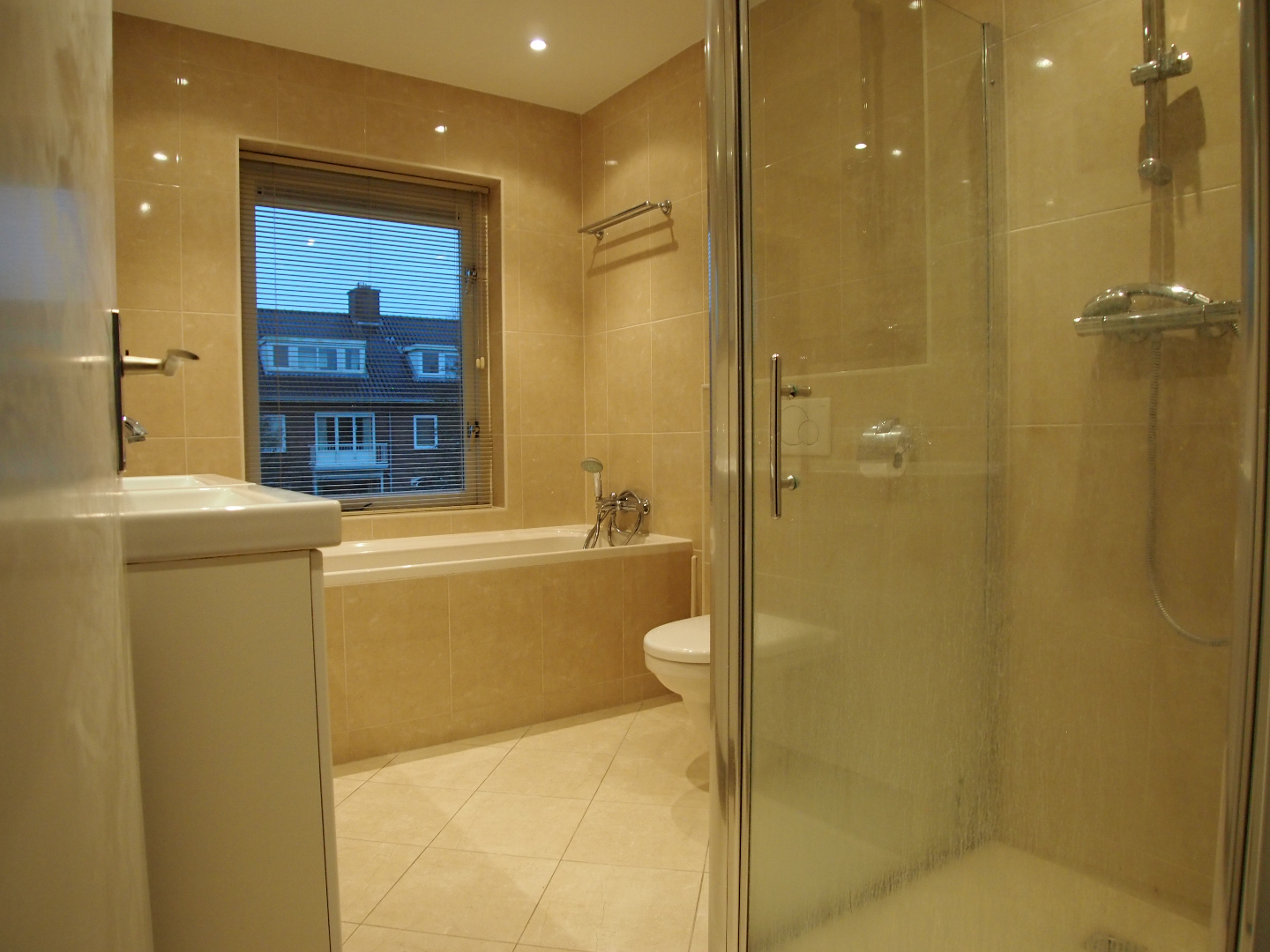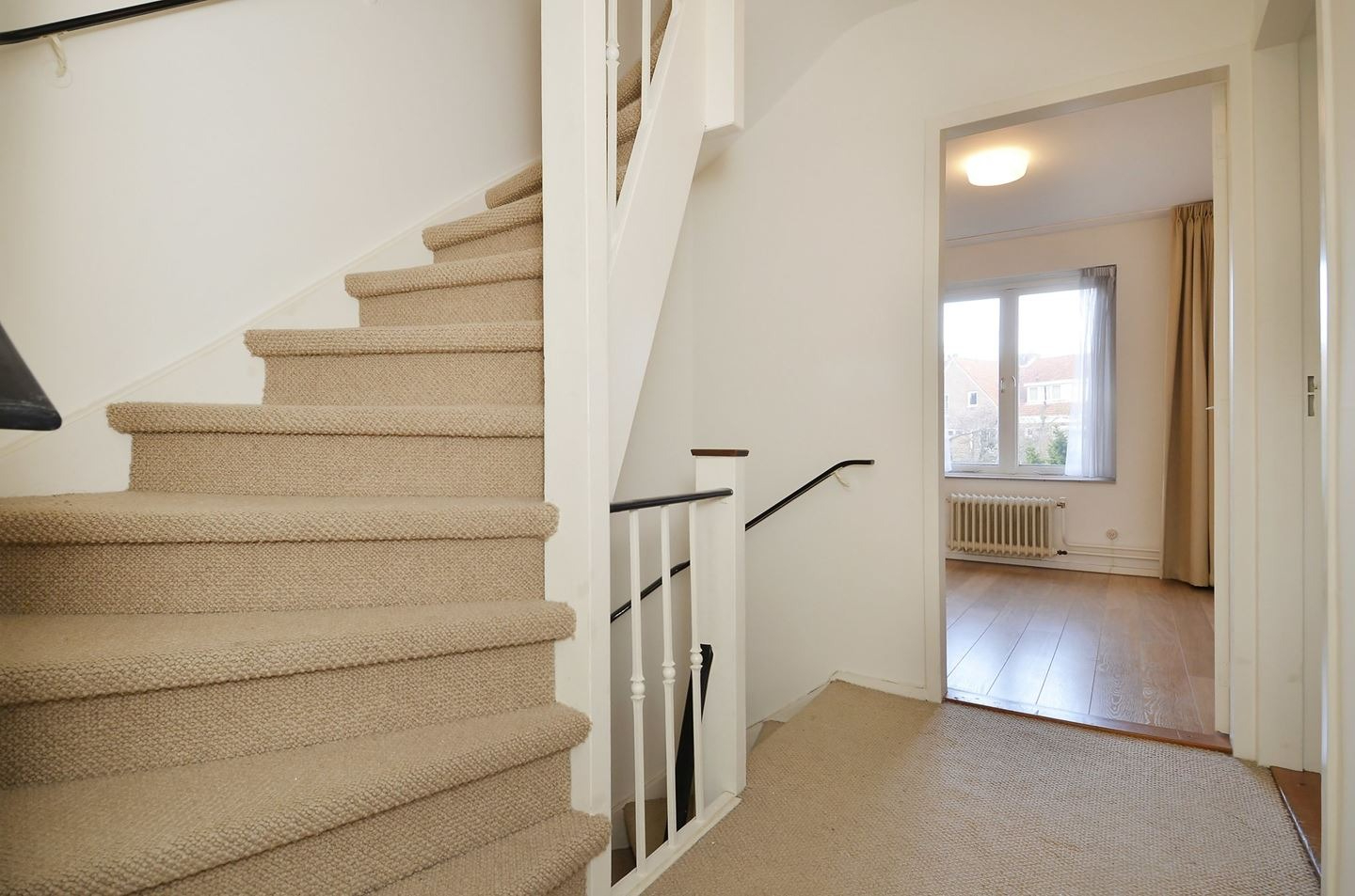 Trap naar bovenverdieping, overloop, twee ruime slaapkamers met dakkapellen en één kleinere (studeer) kamer, 2e doucheruimte met toilet.