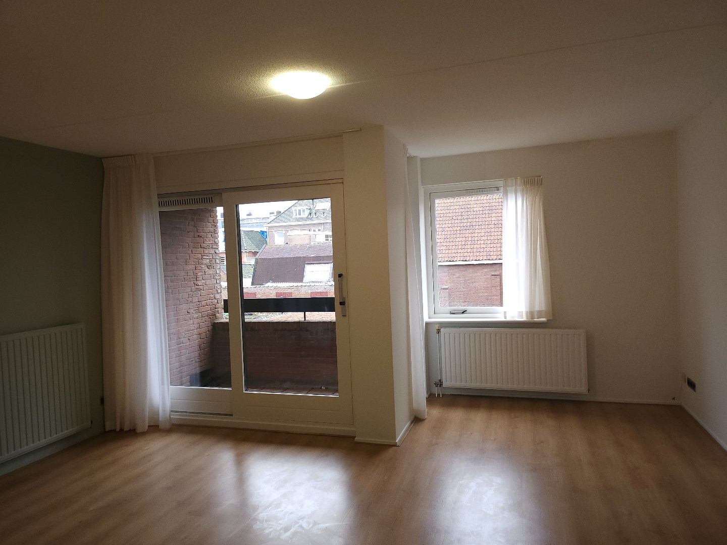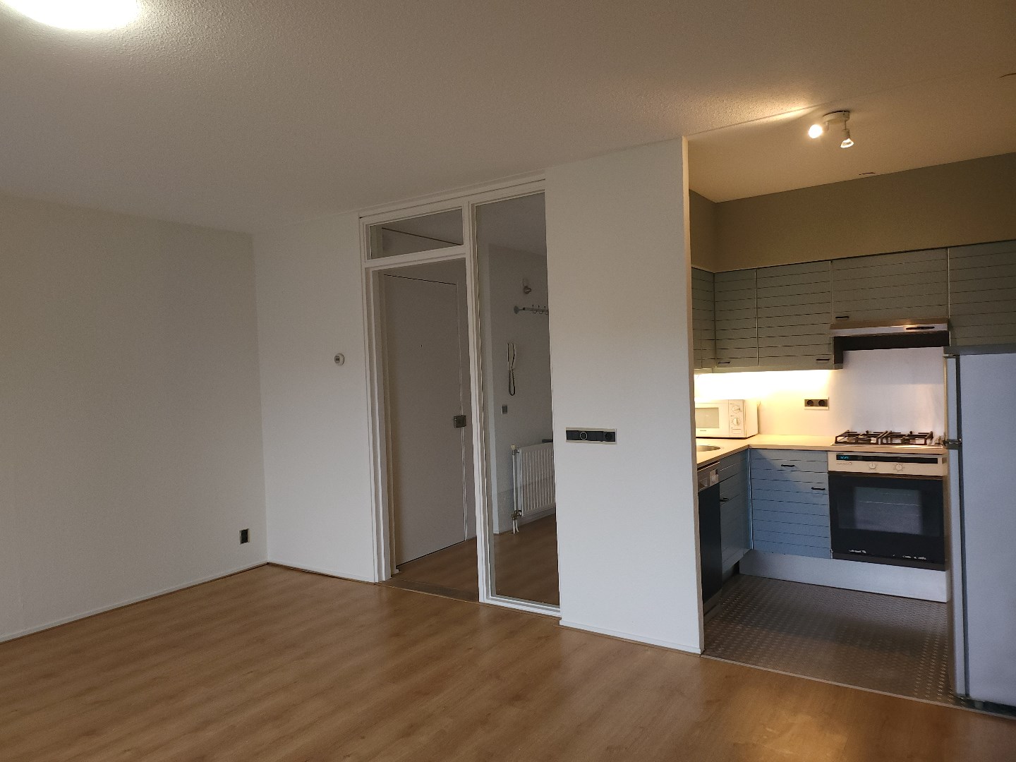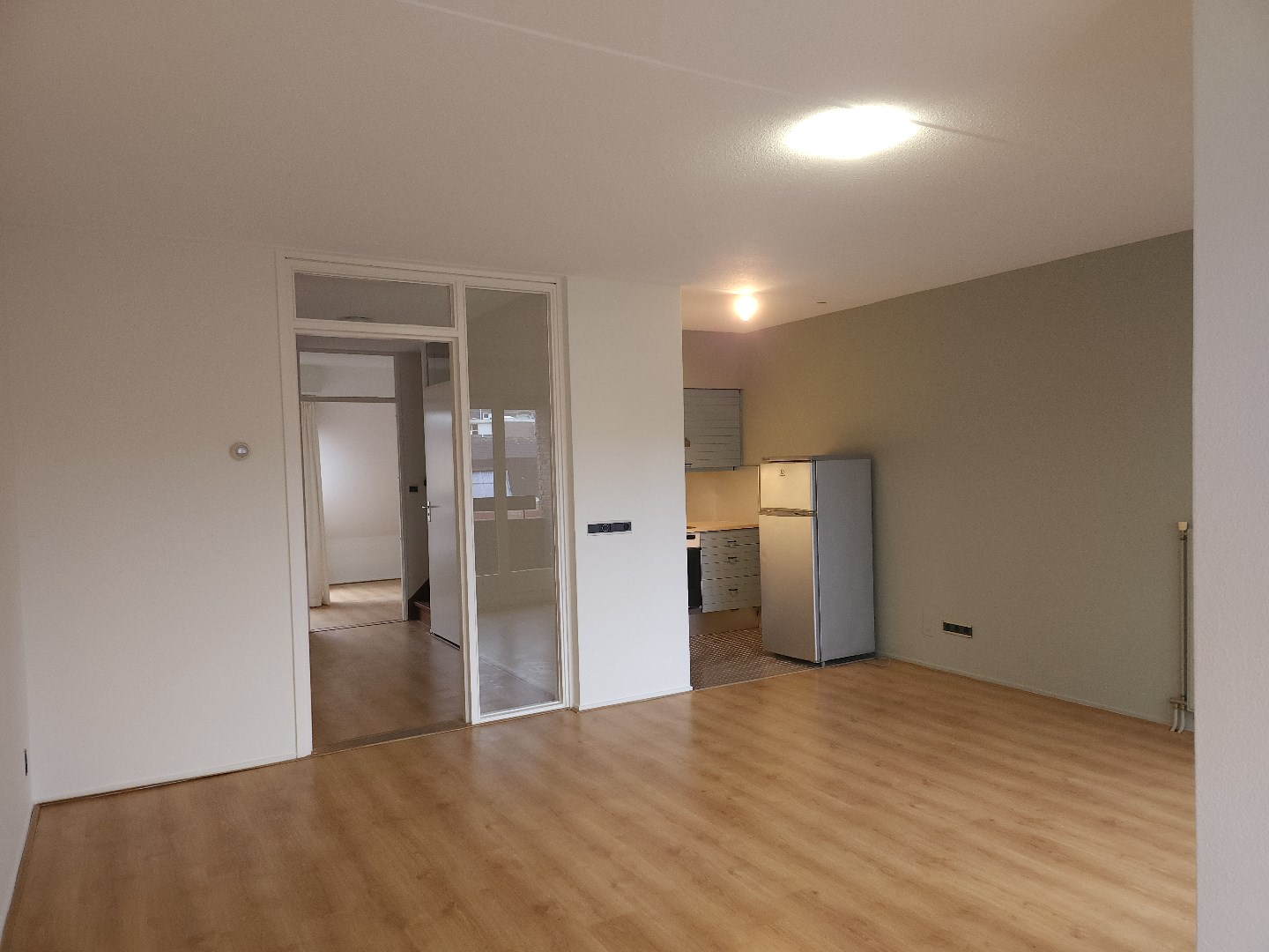Entree, hal met toilet, ruime woon/eetkamer (ca. 27 m2) over de gehele achterzijde van het appartement met open keuken en balkon op het zuidwesten, slaapkamer aan de voorzijde met balkon, trap naar de 1e verdieping.
