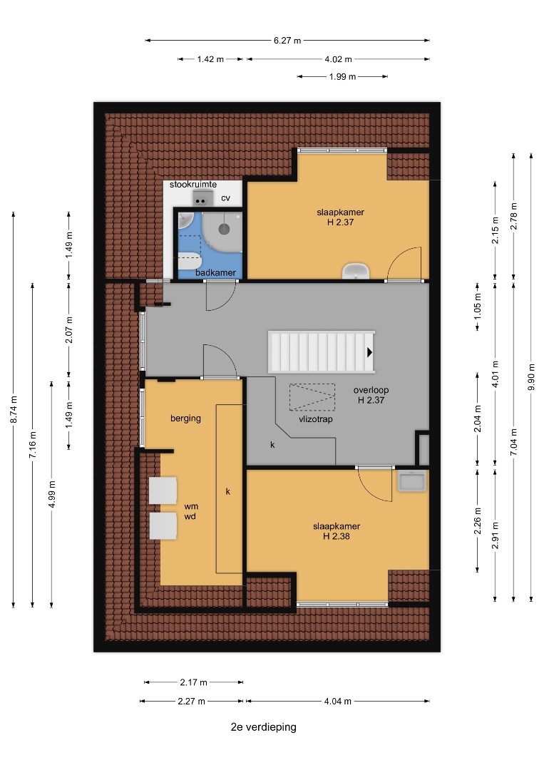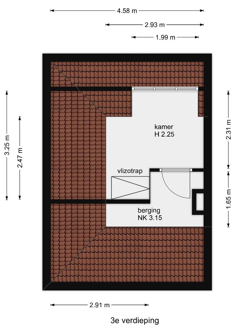 Bereikbaar via vlizotrap, kamer en opslagruimte.
