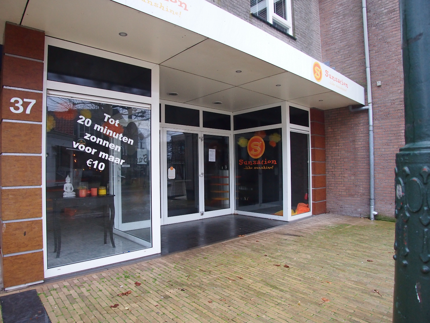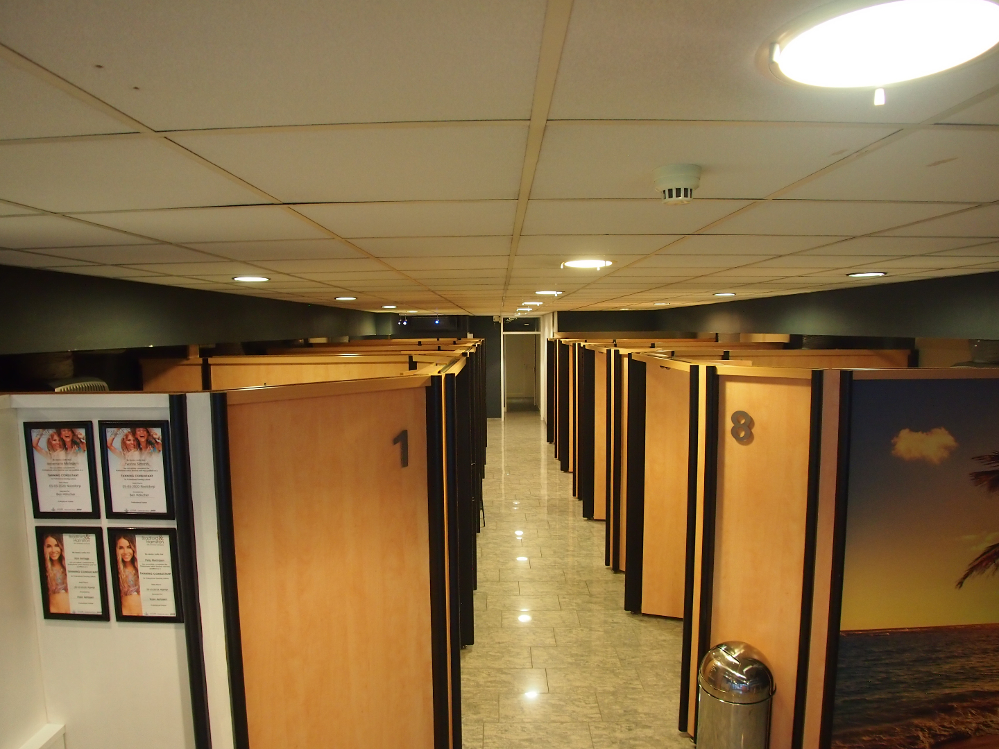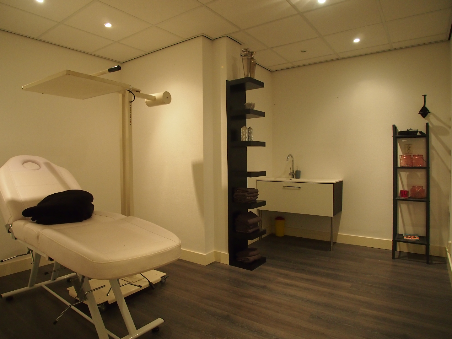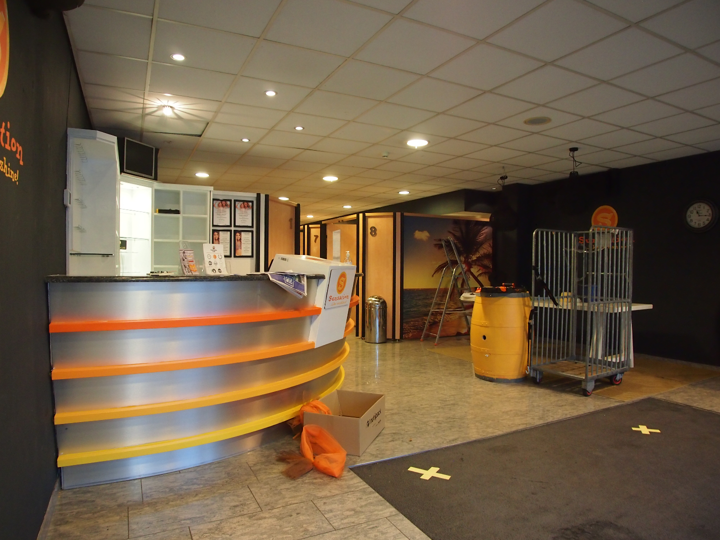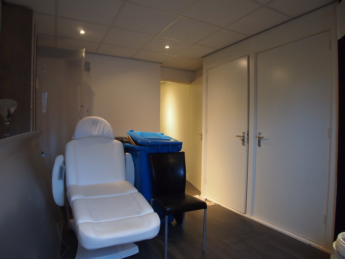 Momenteel is de voorzijde van ca. 120 m² ingericht als zonnestudio. Aan de achterzijde bevinden zich 2 behandelkamers, een wachtruimte, pantry en diverse opslagruimtes.