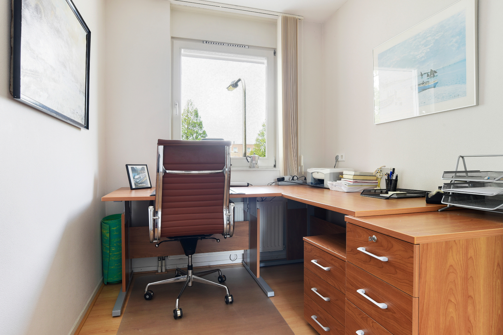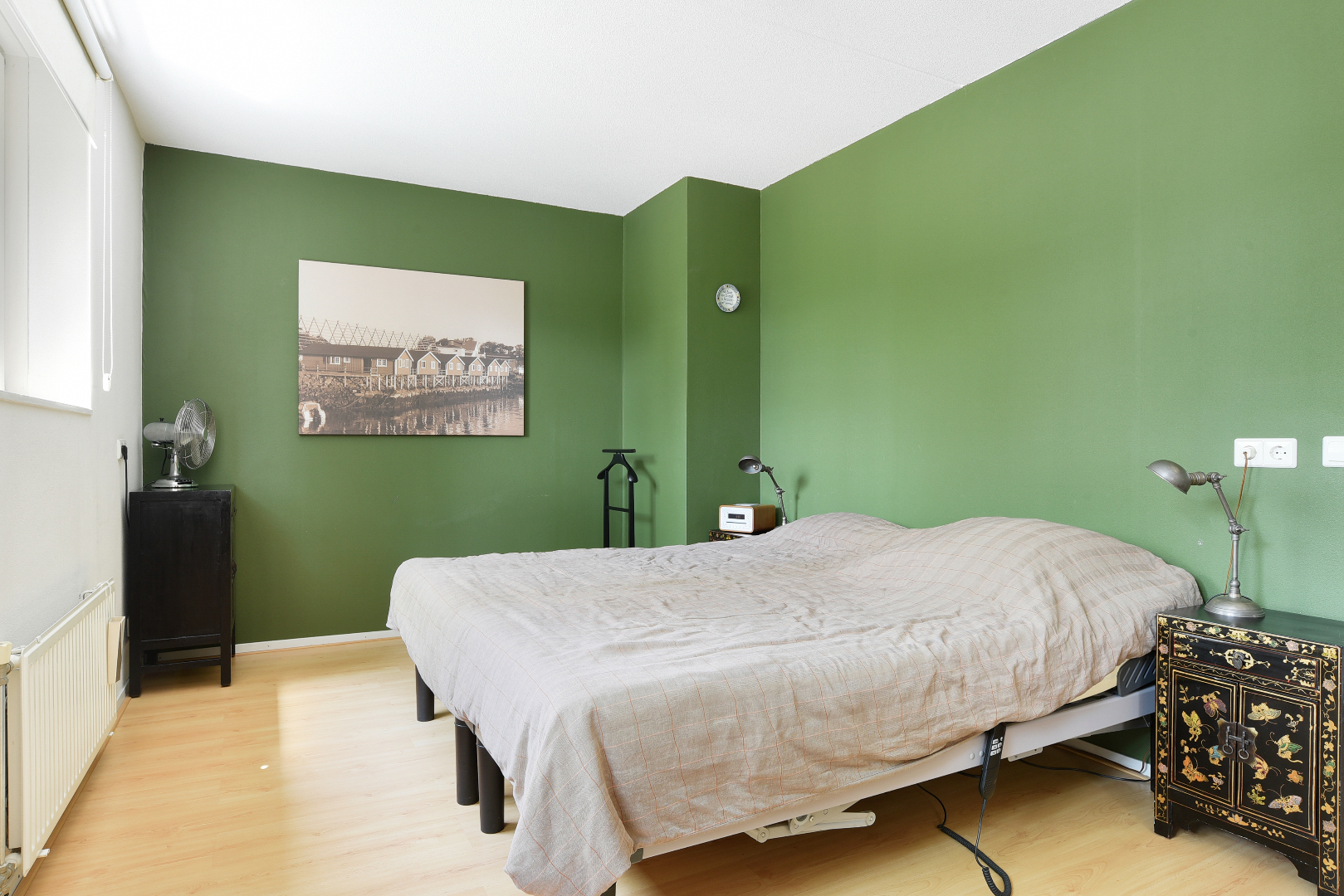 Direct bij binnenkomst bevindt zich een kleinere kamer die uitstekend te gebruiken is als bv. kantoor of logeerkamer, de grote slaapkamer is voorzien van grote raampartijen en een grote kastenwand.