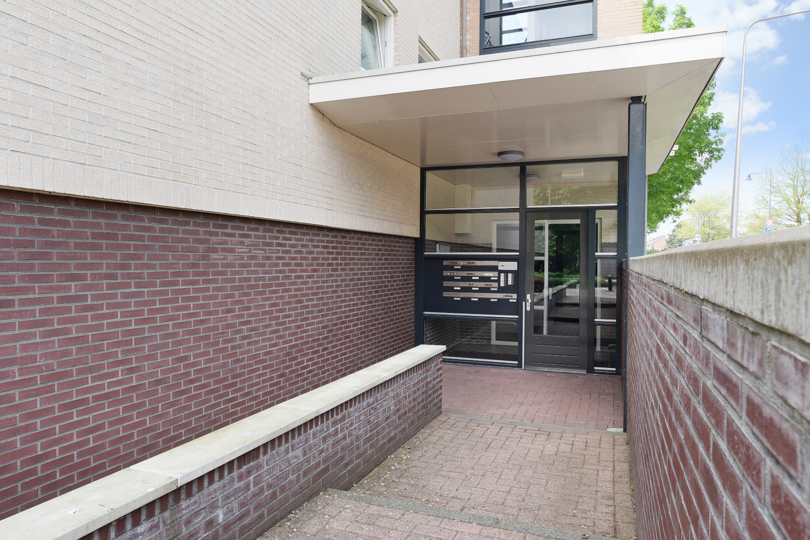 Afgesloten portiek met bellentableau en brievenbussen, centrale hal met lift en trappenhuis naar de bovengelegen verdiepingen.