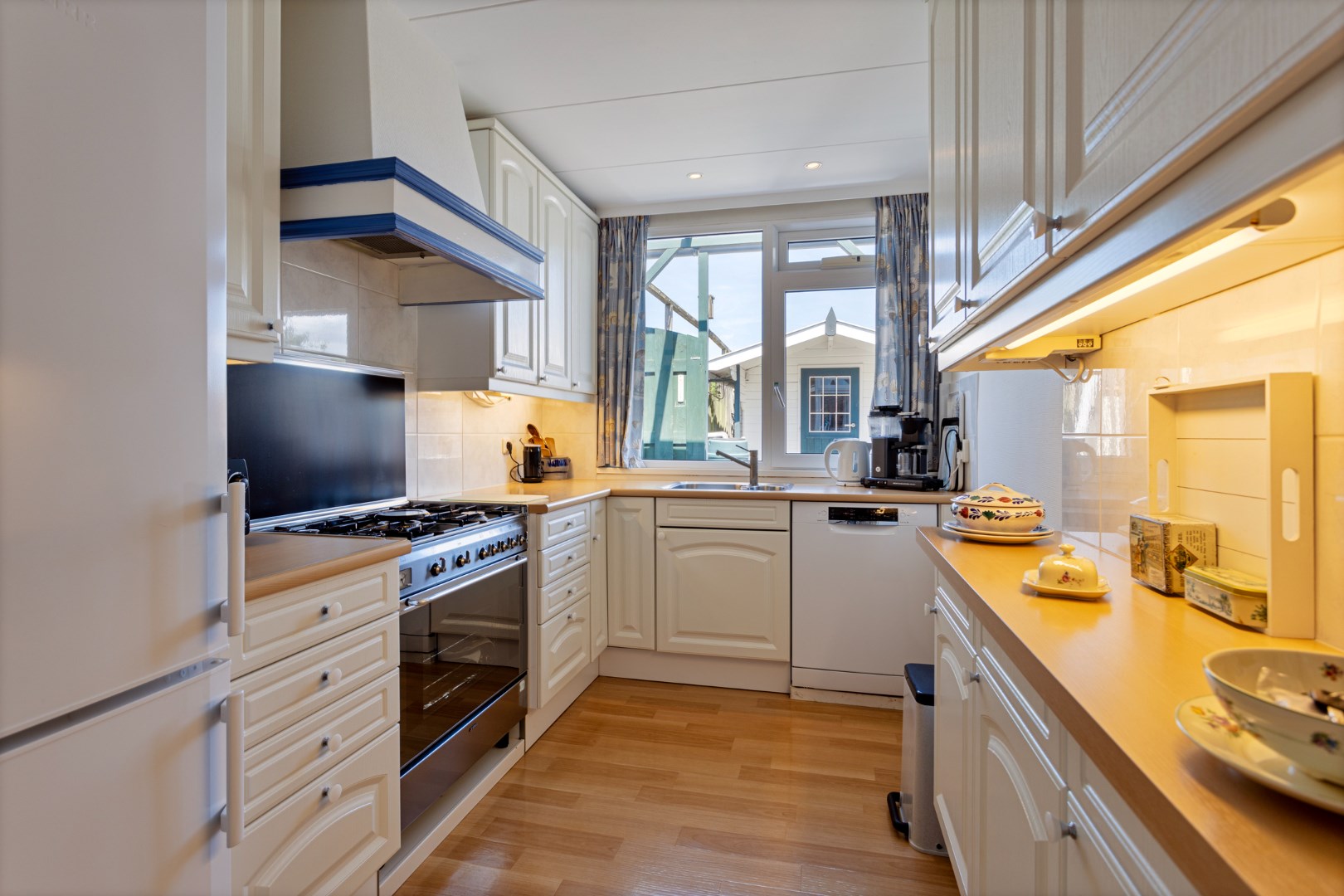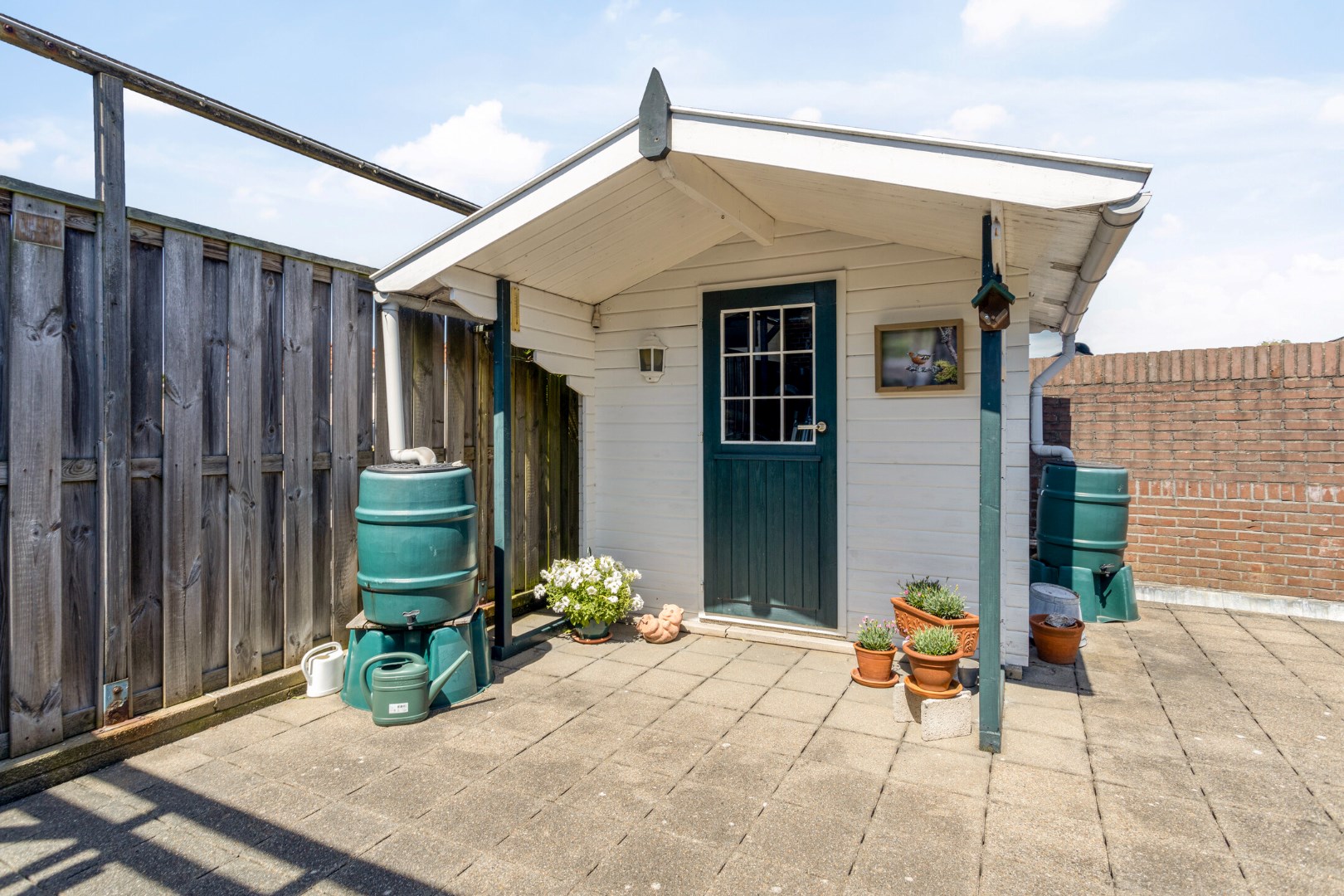Het dakterras aan de achterzijde van het appartement is voorzien van een houten blokhut voor de nodige bergruimte en op de begane grond bevindt zich een tweede berging welke is voorzien van een entresolvloer voor nog meer opslagruimte.