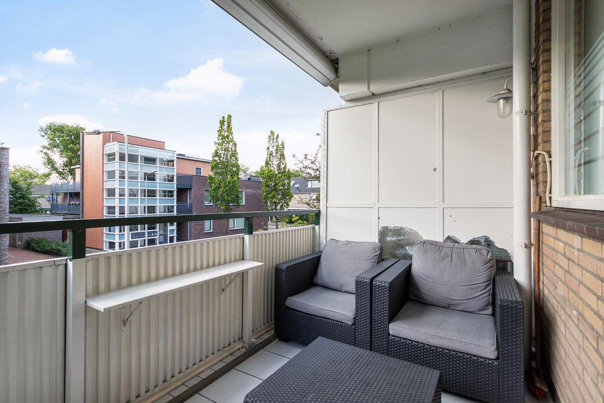 Het ruime balkon is gelegen op het zuidoosten en is bereikbaar vanuit de woonkamer en de keuken.