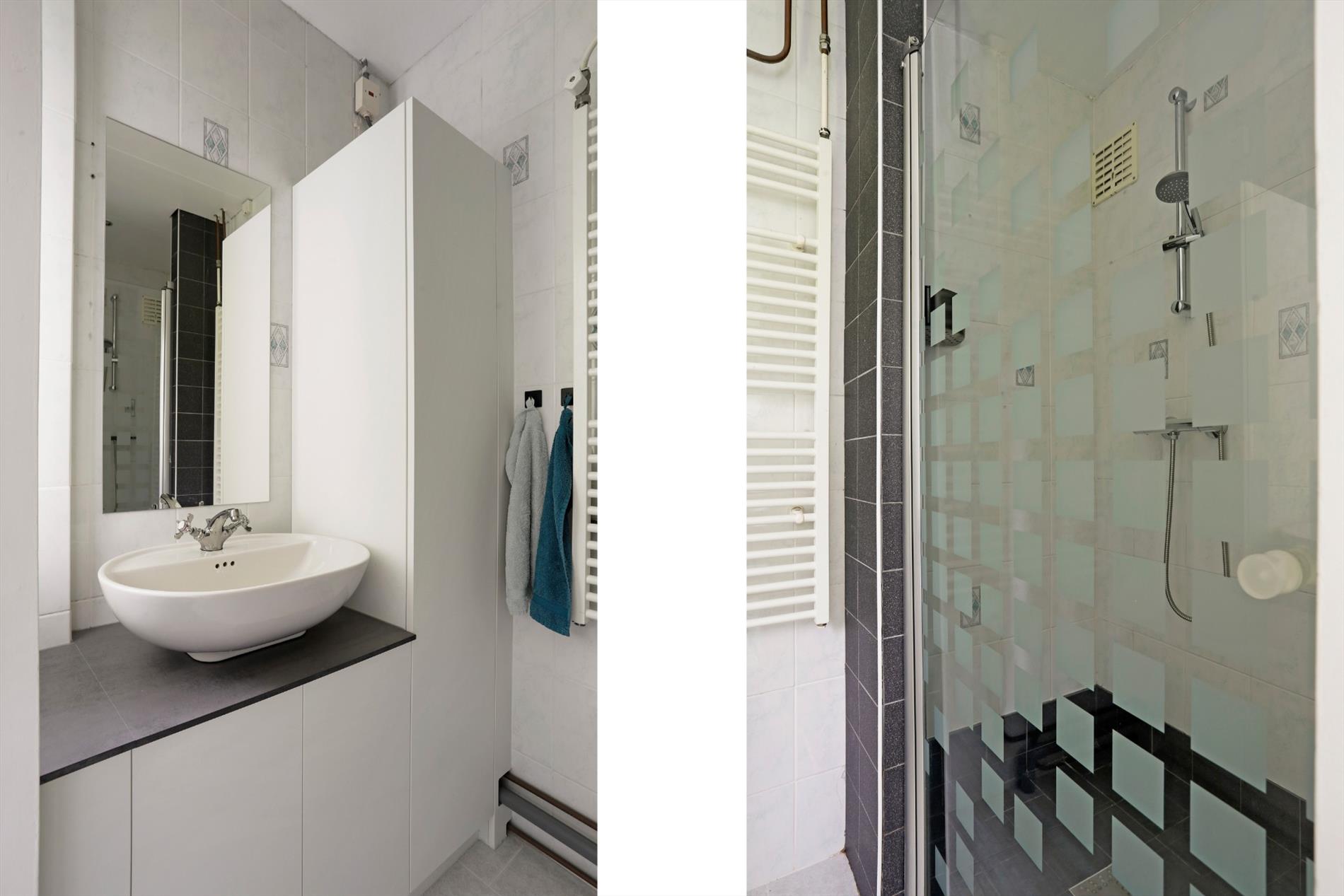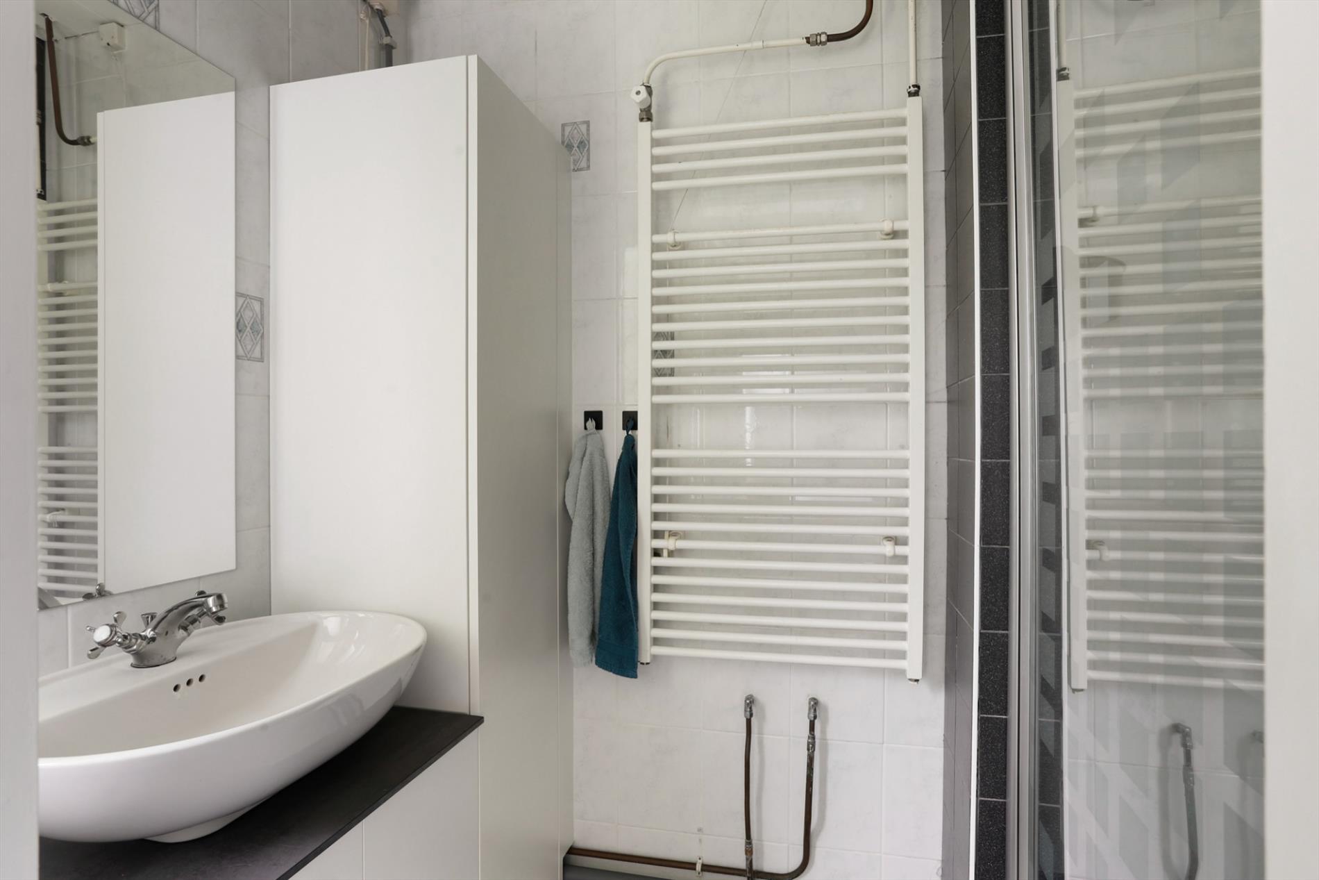 De opstelplaats voor wasmachine, droger en Cv-installatie bevinden zich in de ondergelegen berging.