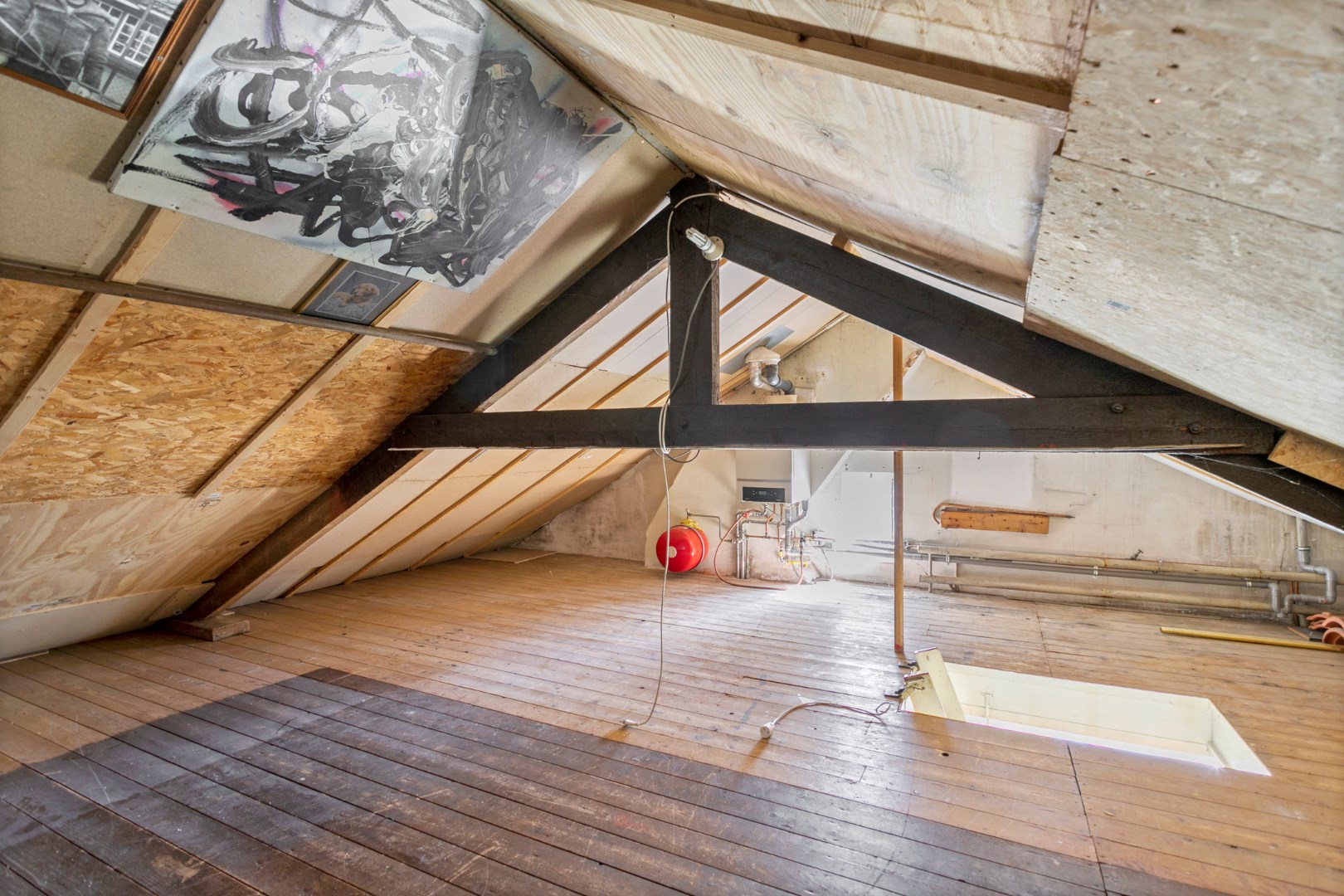 ruime zolderruimte bereikbaar via een vlizotrap. Deze verdieping biedt de mogelijkheid een extra kamer te creëren.