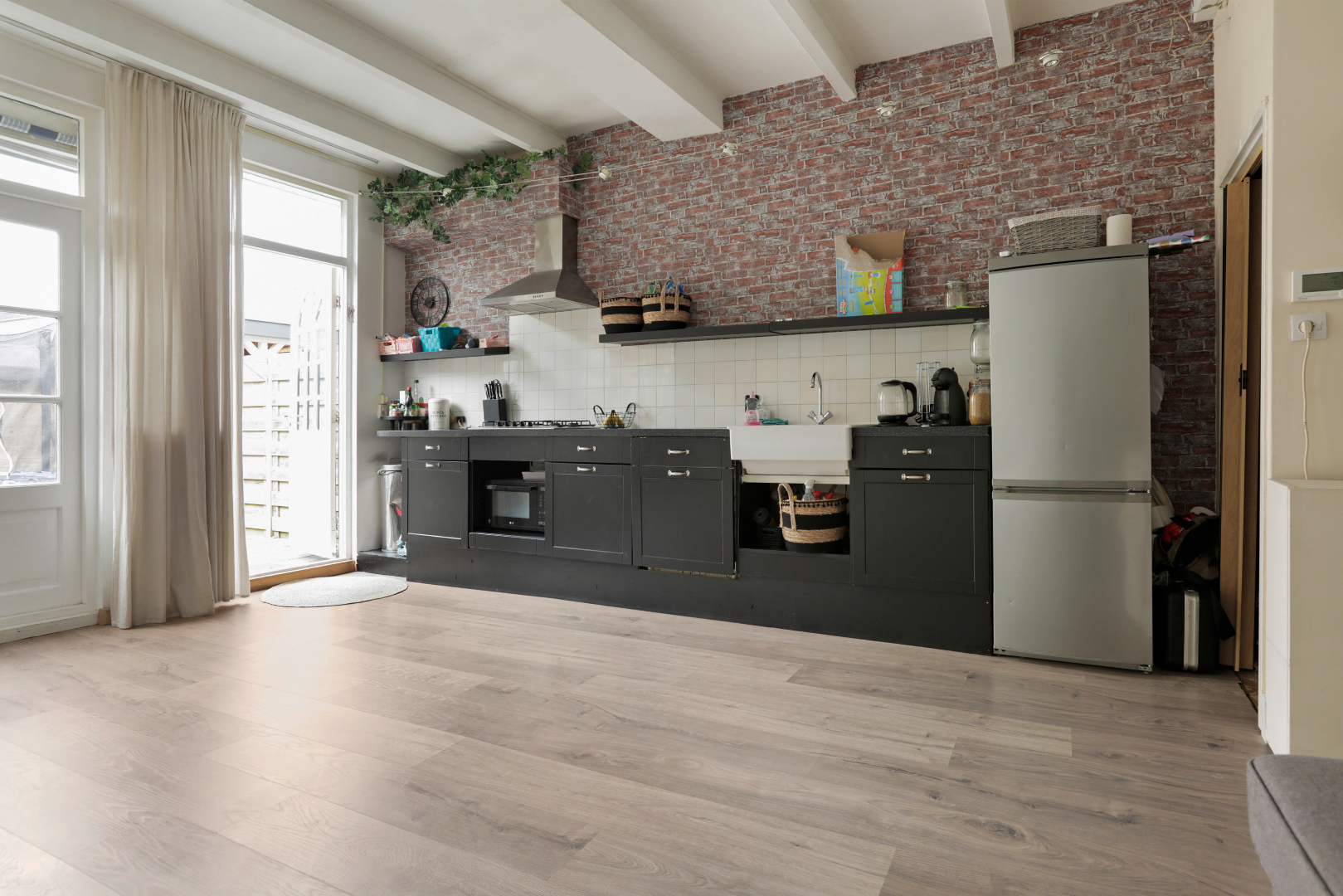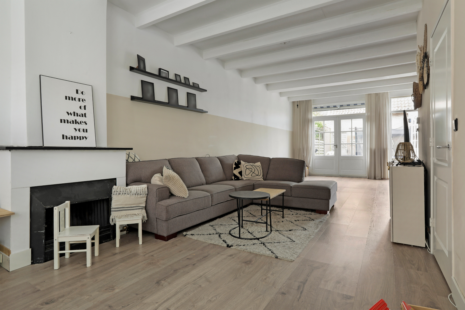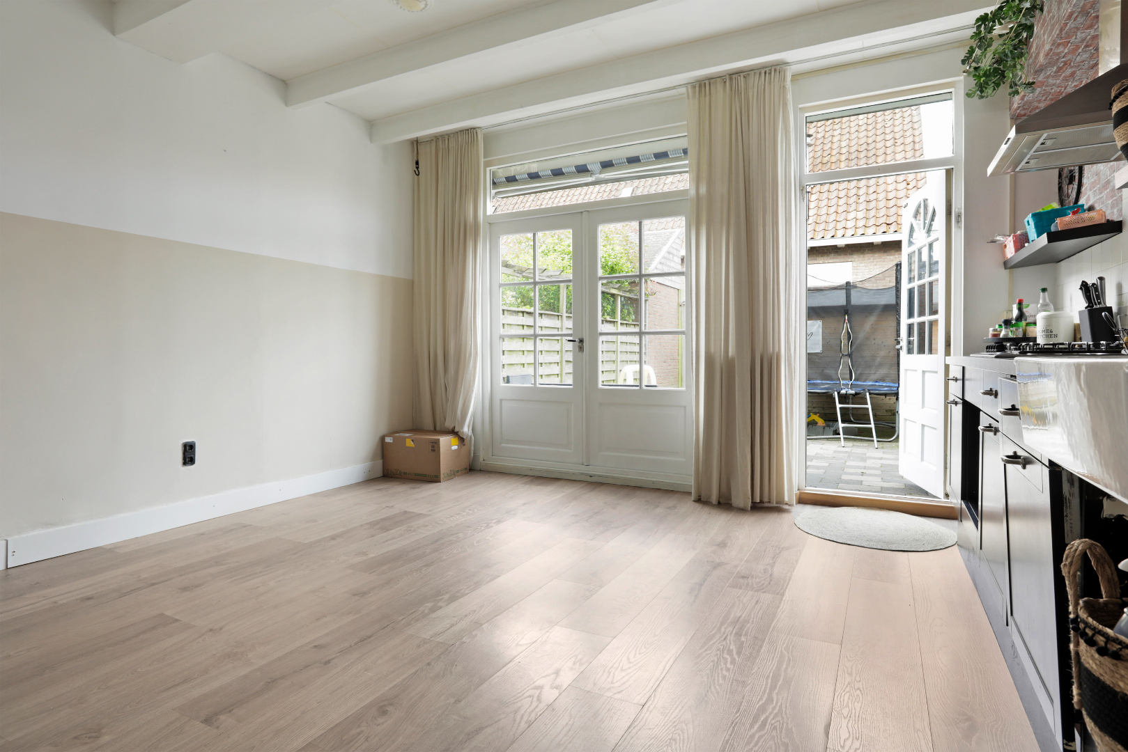 - Ruime lichte woonkamer met aanbouw en openslaande deuren.