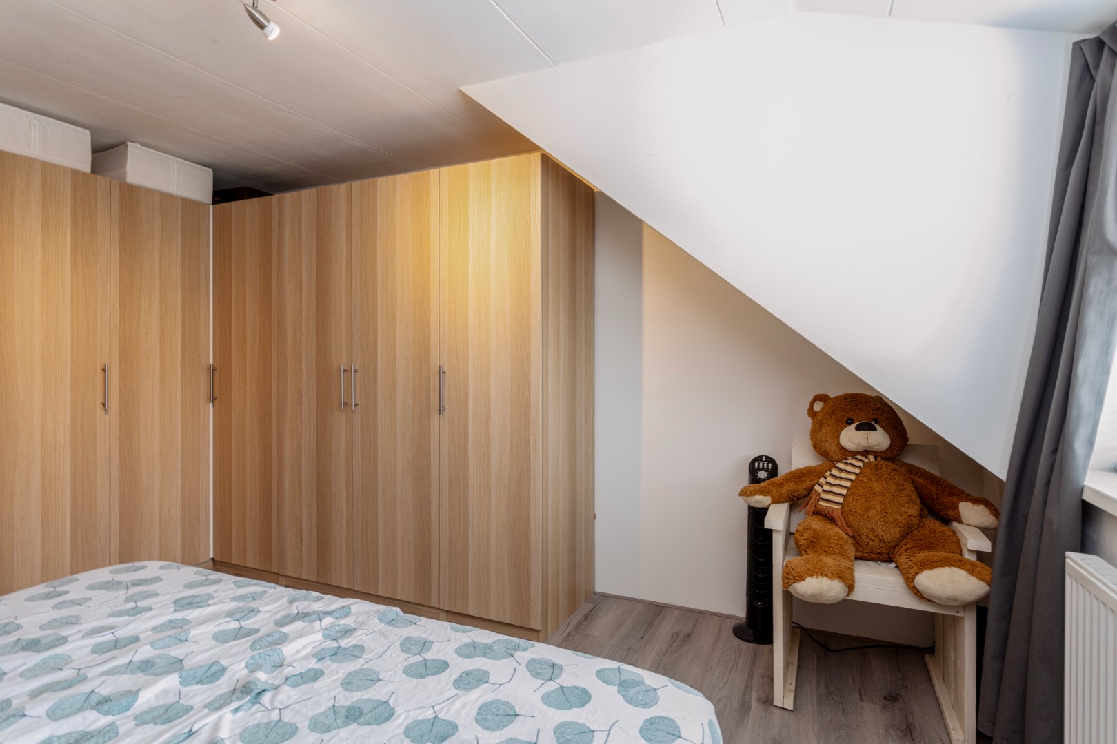 Overloop met met een slaapkamer over de volle breedte van de woning aan zowel de voor- als achterzijde.