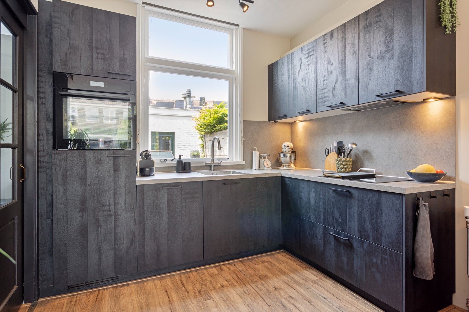 De in 2022 geplaatste moderne open keuken is voorzien van alle gemakken zoals o.a. een inductie kookplaat, stoomoven, vaatwasser en een Grohe Red kokend waterkraan.