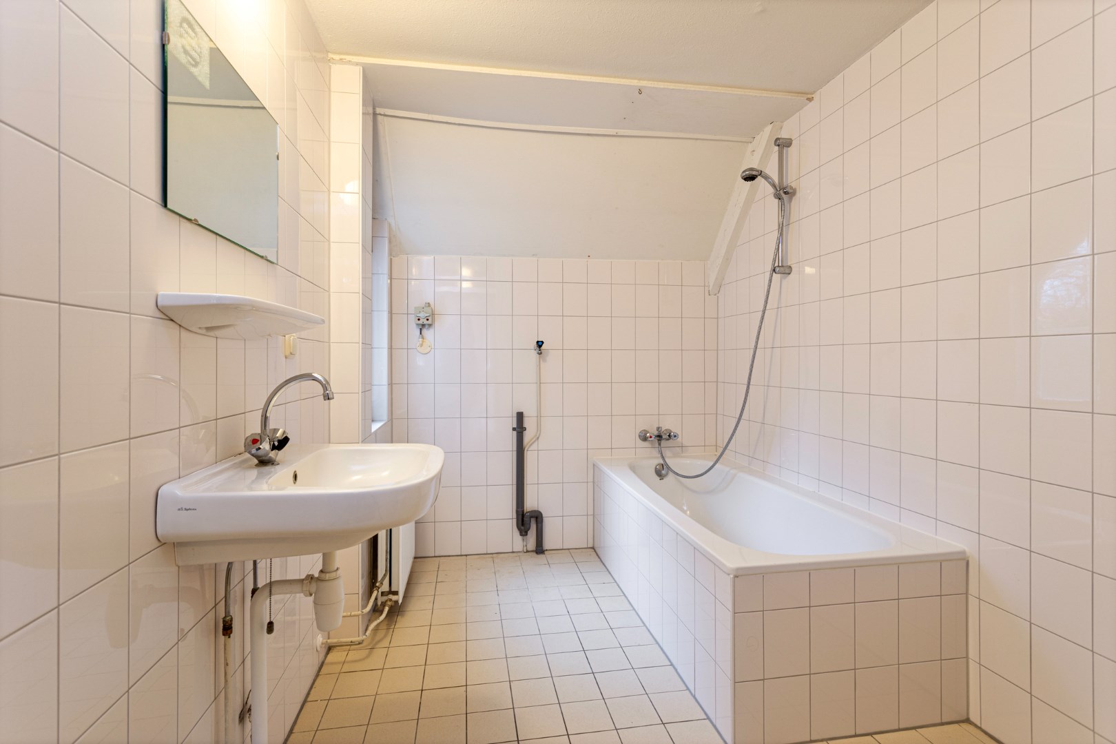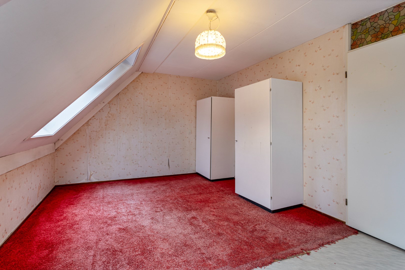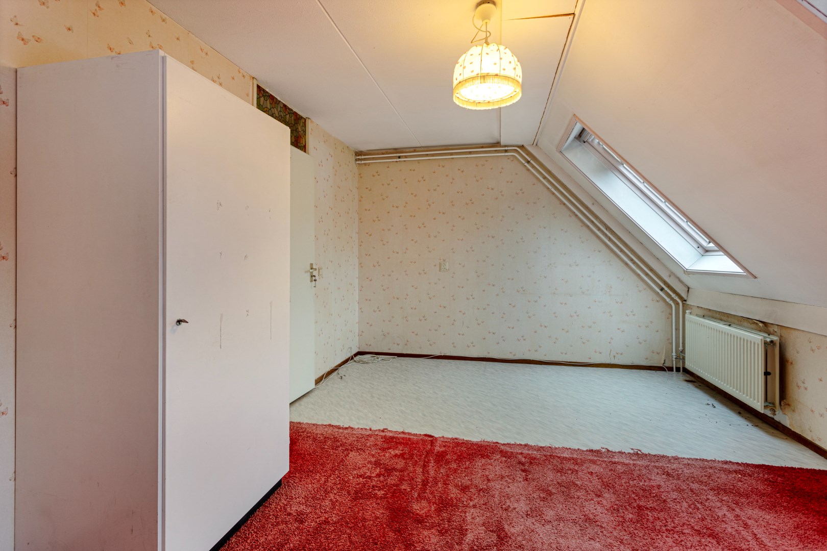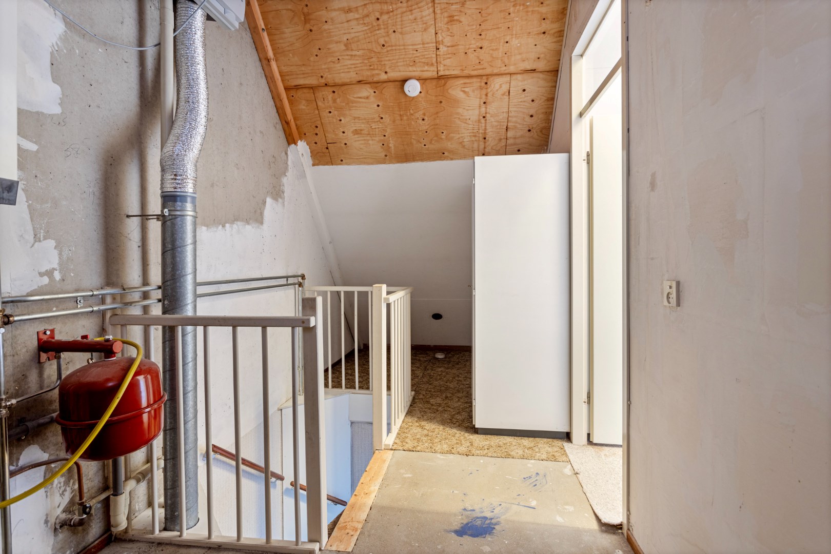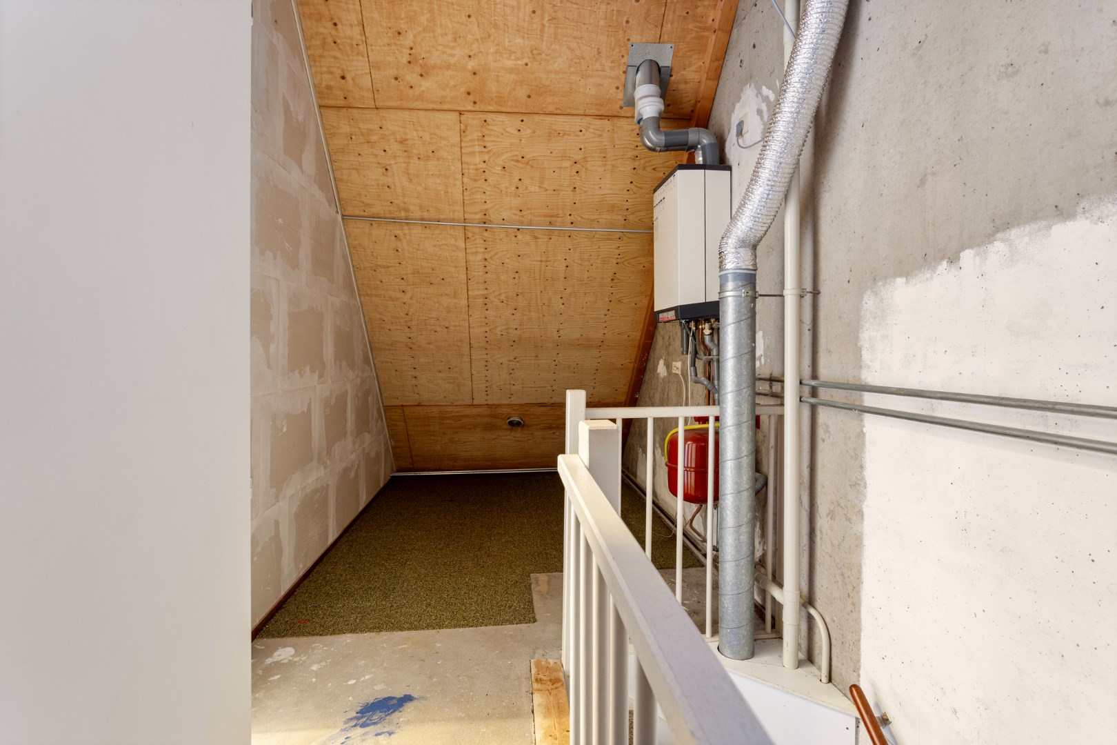 Overloop met opstelplaats voor de cv-ketel en een ruime zolderkamer met Velux dakvenster.