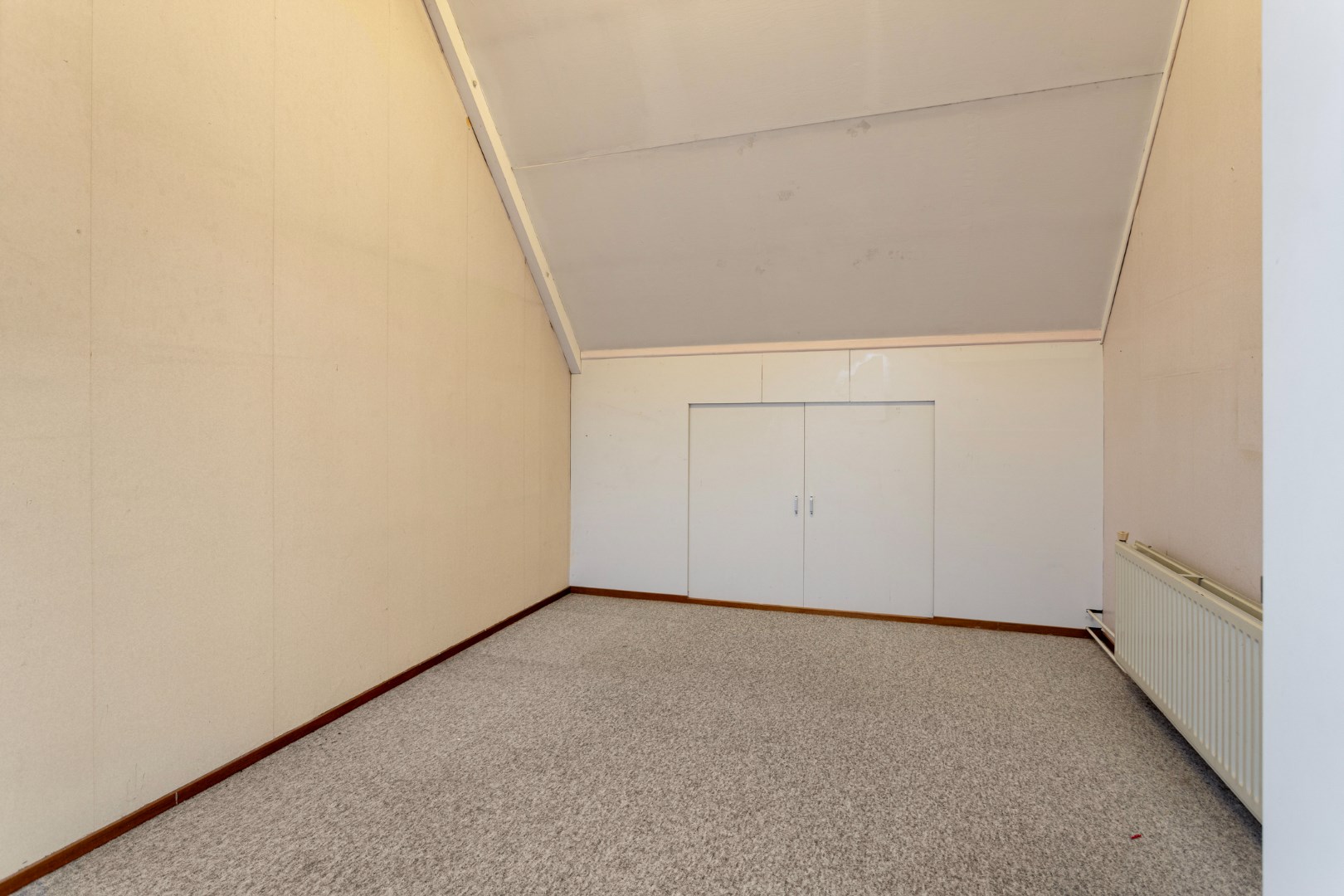 Overloop met bergkast, slaapkamer over de volle breedte van de woning aan de achterzijde voorzien van 2 Velux dakvensters en een slaapkamer aan de voorzijde.