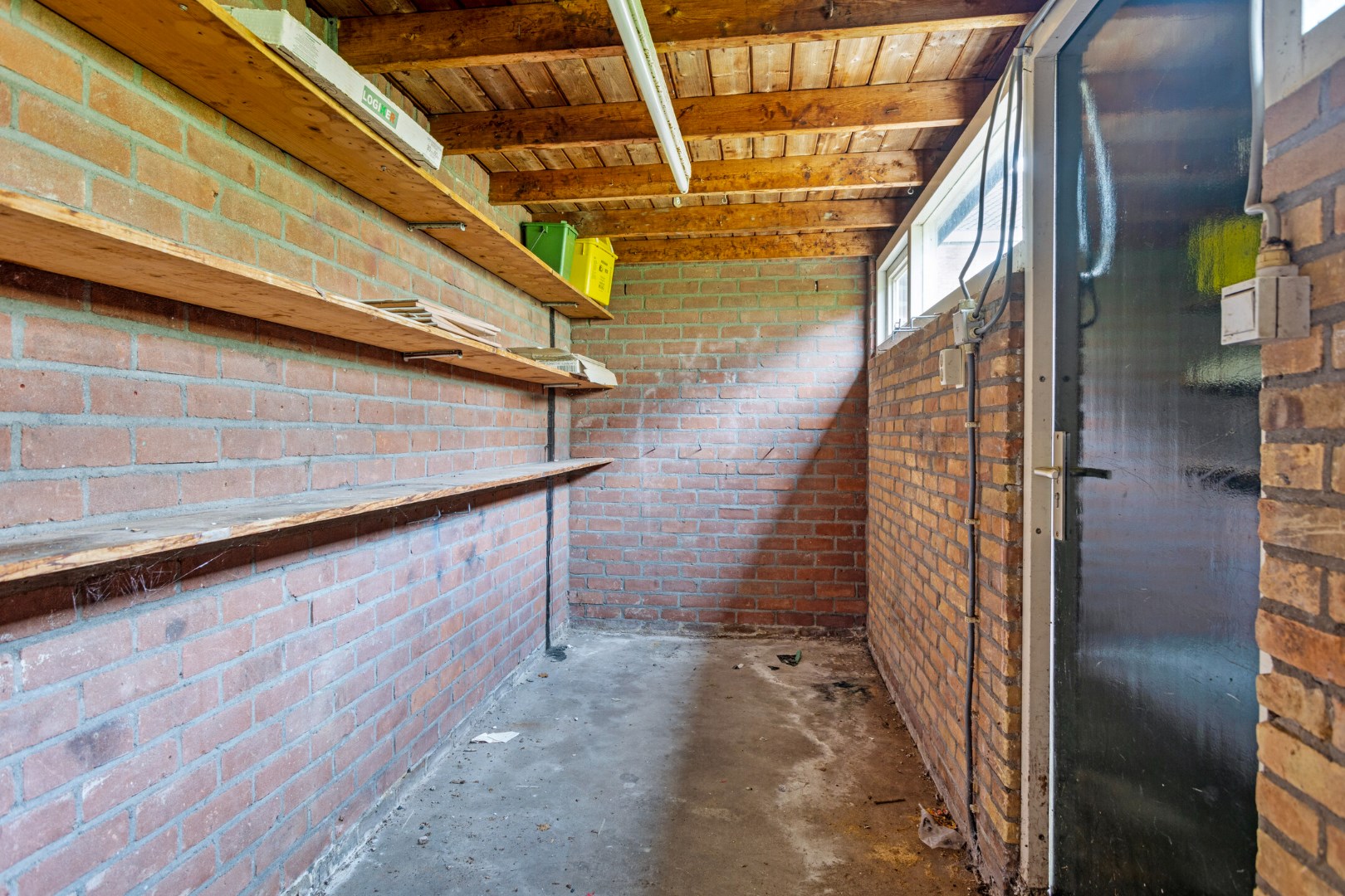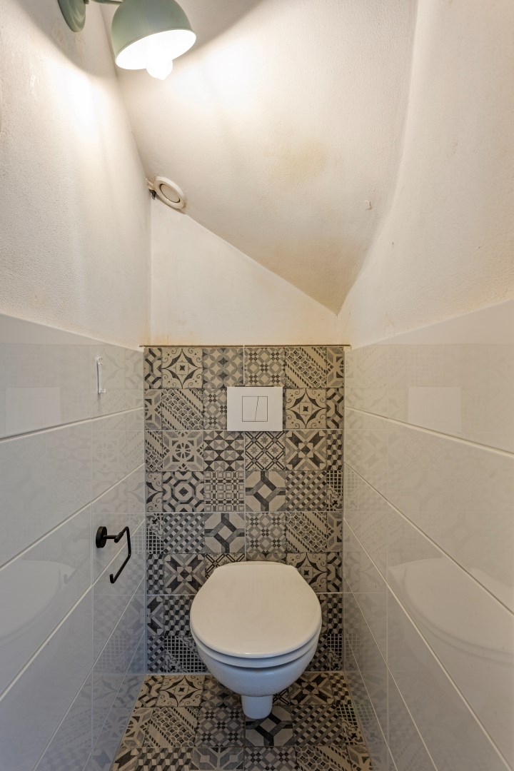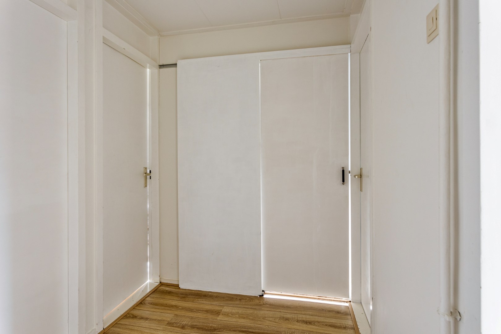 Halverwege de woonkamer bevindt zich een hal met toilet, meterkast en trap naar de 1e verdieping.