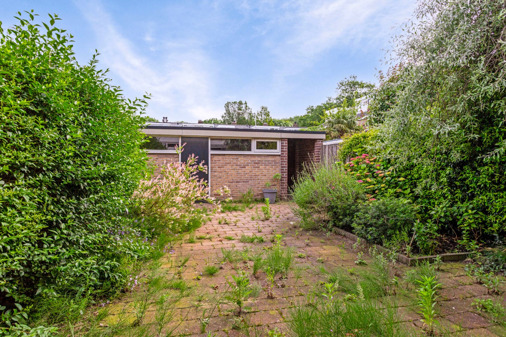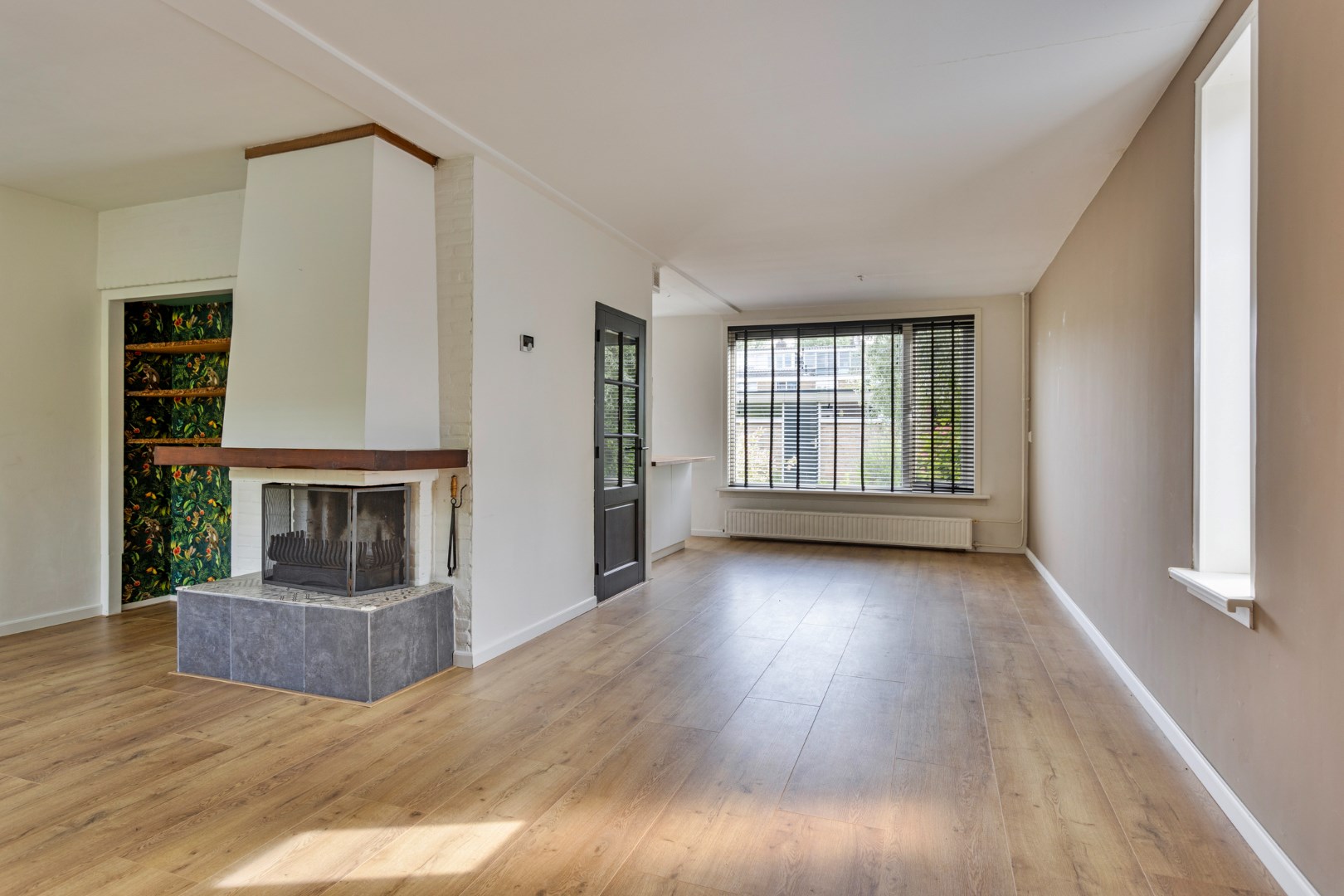 entree, hal met garderobe, ruime L-vormige woon/eetkamer met een nette laminaatvloer en openhaard, open keuken met diverse inbouwapparatuur en een deur naar de achtertuin. De achtertuin is voorzien van een stenen berging en achterom.