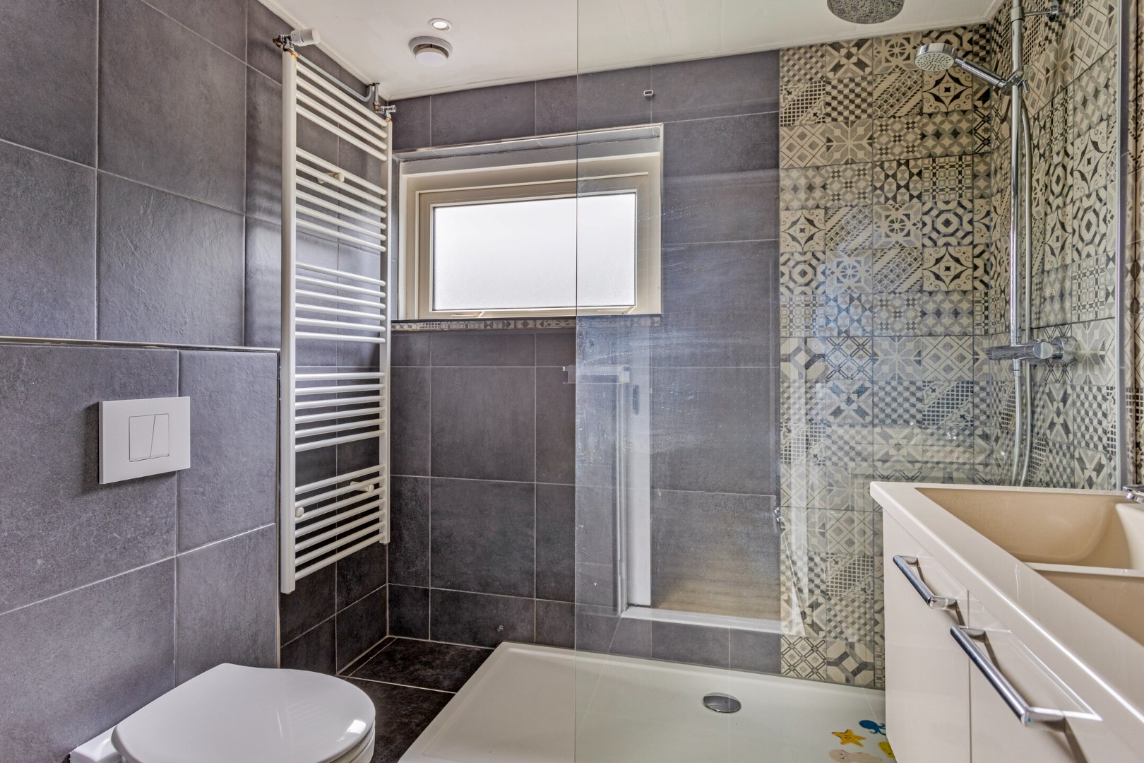 Overloop, 2 slaapkamers aan de voorzijde en 2 slaapkamers aan de achterzijde. De badkamer ligt tussen 2 kamers in en is voorzien een inloopdouche, wastafel en toilet.