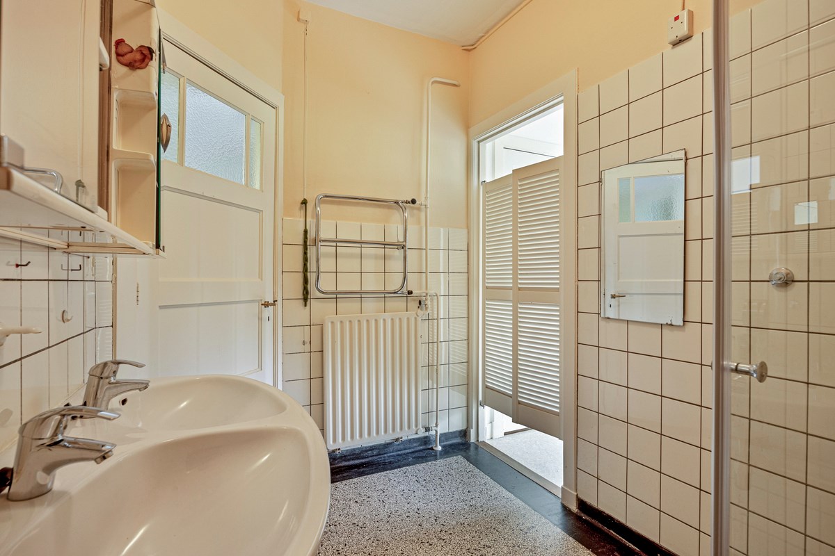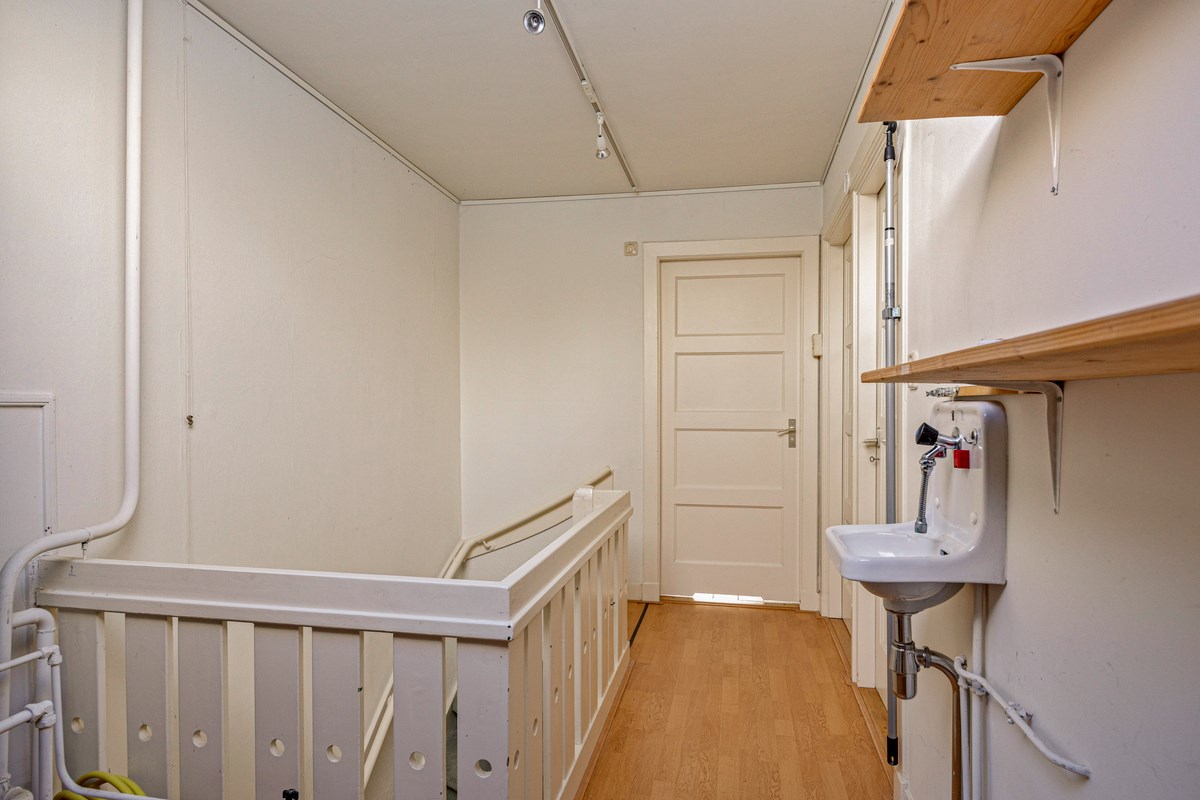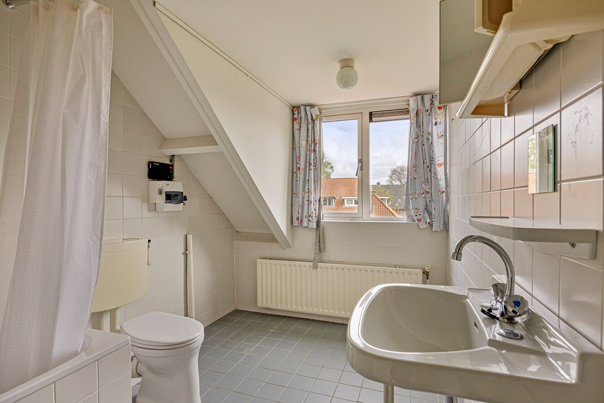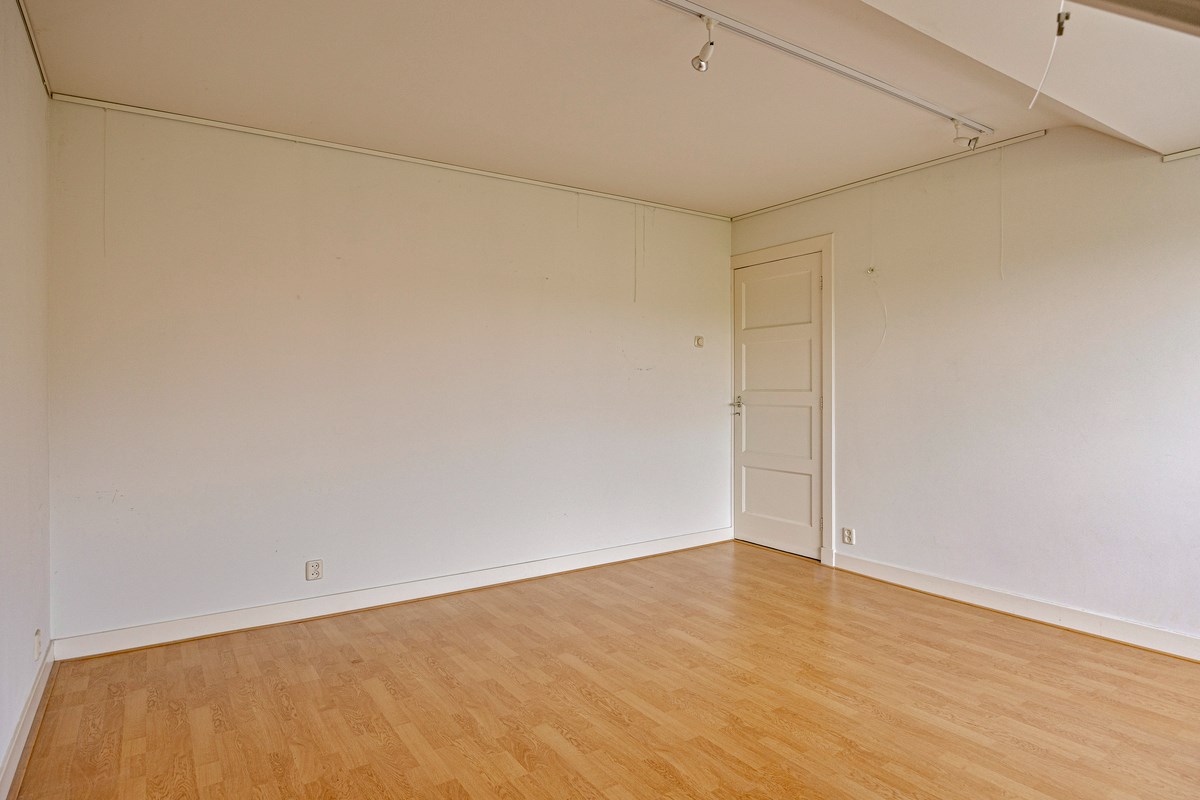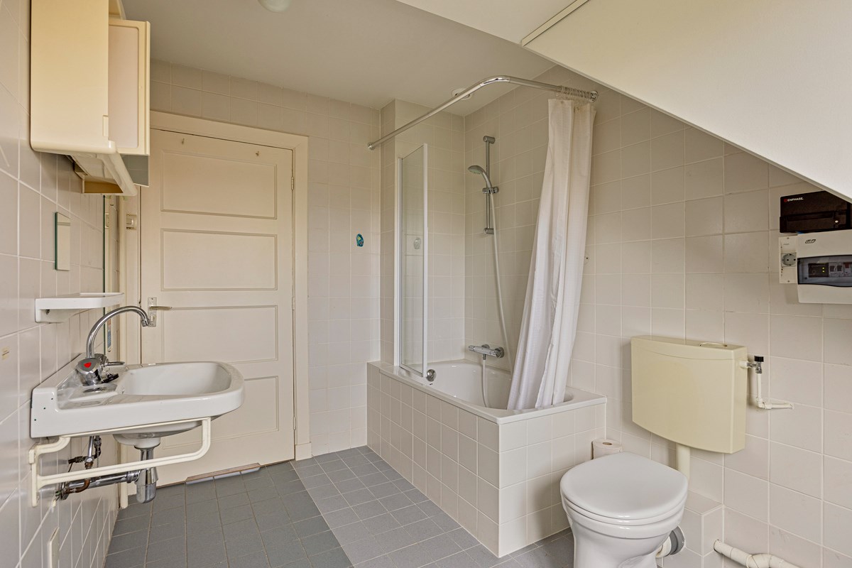 Op de eerste verdieping bevinden zich 4 kamers, badkamer en separaat toilet. Zowel aan de voorzijde als achterzijde een grote slaapkamer en een kleinere kamer. De badkamer is zowel vanuit de overloop als vanuit de grote achterslaapkamer te bereiken.