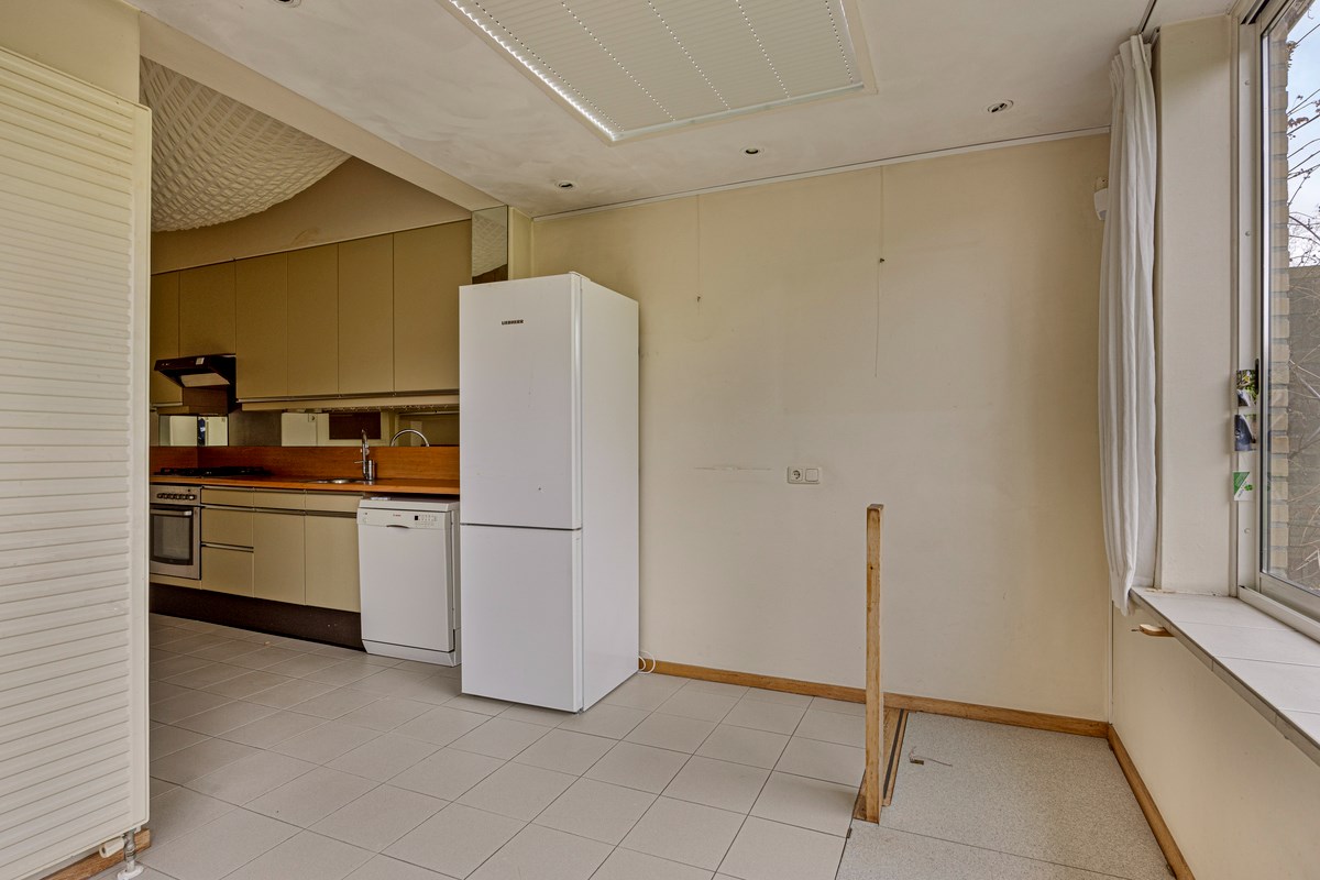 Ruime woon/eetkamer met een grote raampartij aan de voorzijde en een openhaard halverwege de kamer. De keuken heeft een aanbouw en geeft toegang tot een ruime kelder met aansluiting voor elektra en water. De aanbouw van de keuken geeft tevens toegang tot de woon/eetkamer. Zowel via de keuken als via de woonkamer heeft u toegang tot de tuin aan de achterzijde van de woning. De tuin is gelegen op het zuidoosten.