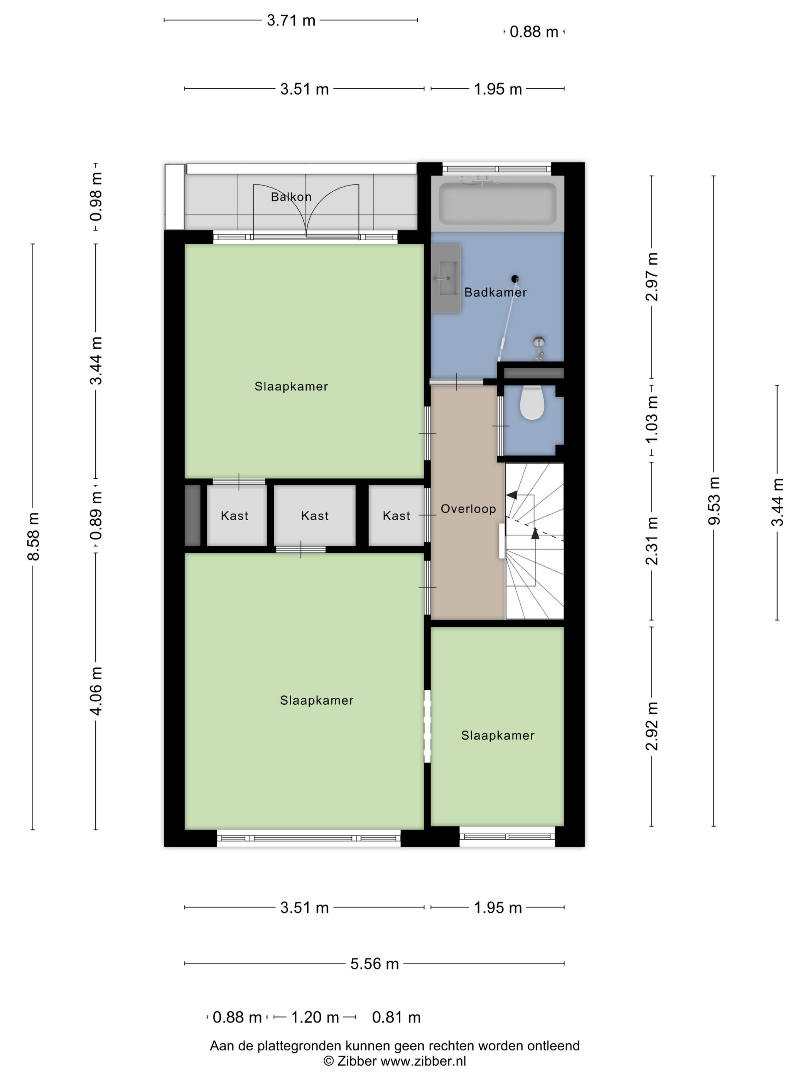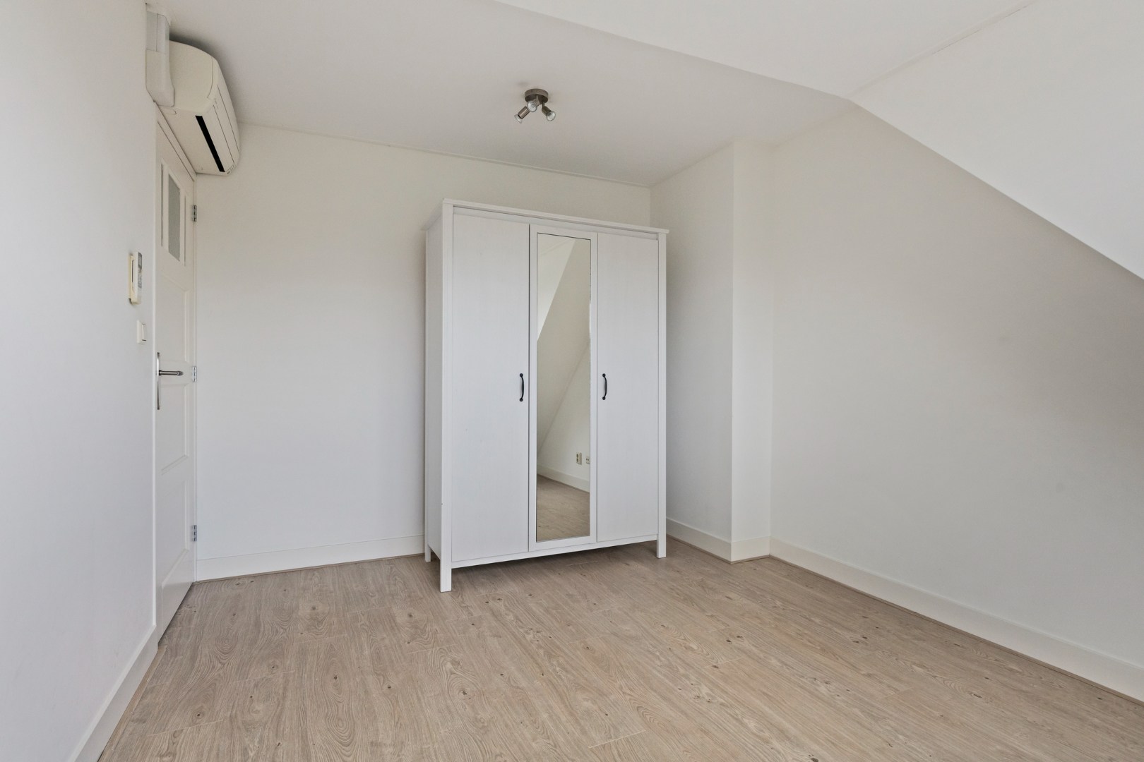 Overloop met 2e toilet en inbouwkast, grote slaapkamer aan de voorzijde met grote inloopkast (voormalige slaapkamer) en nog een extra vaste kast, ruime slaapkamer aan de achterzijde met vaste kast, openslaande deuren en balkon.
