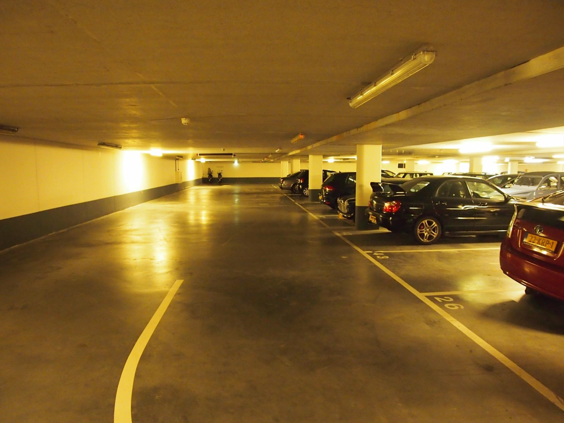 De parkeerplaats is gelegen in het bewoners gedeelte onder de openbare parkeergarage aan de Luifelbaan