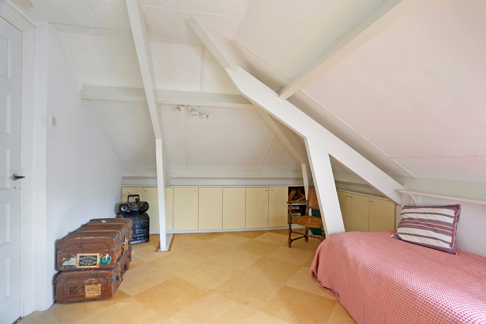 Overloop met toegang tot alle vertrekken, drie slaapkamers, vierde ruimte thans in gebruik als berging, tweede badkamer met douche, wastafel en toilet. Boven de slaapkamer aan de voorzijde is een kleine vliering aanwezig.
