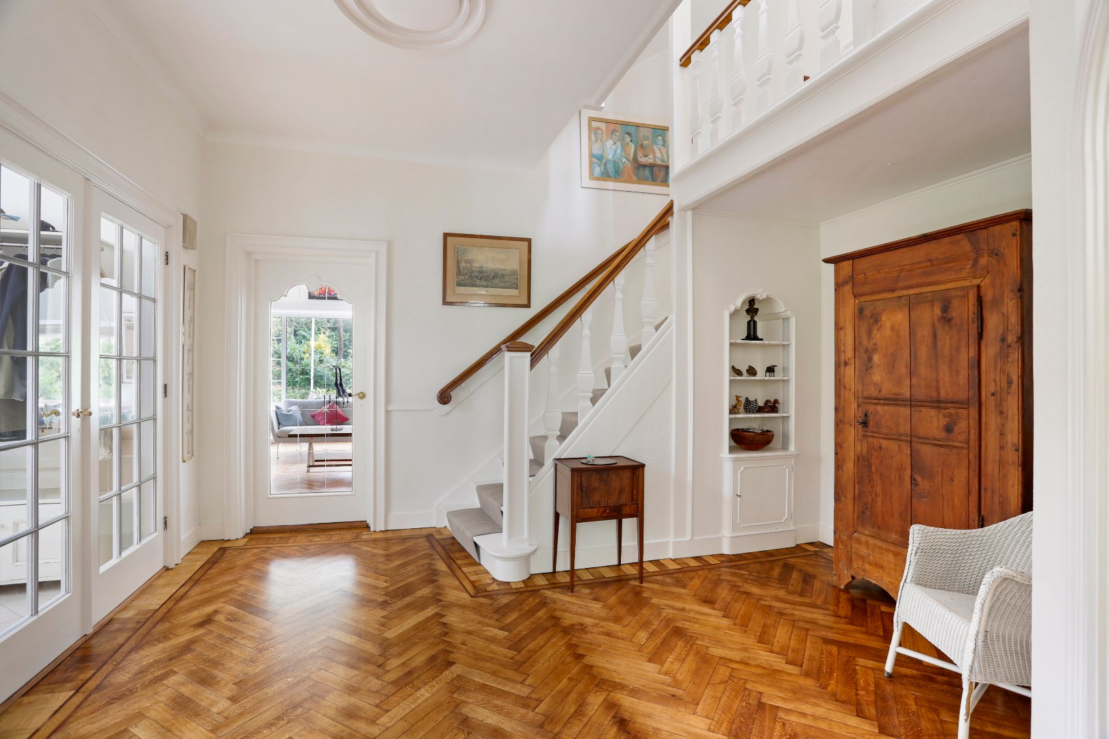 - Indrukwekkende entree en trappenhuis met glas-in-lood lichtkoepel