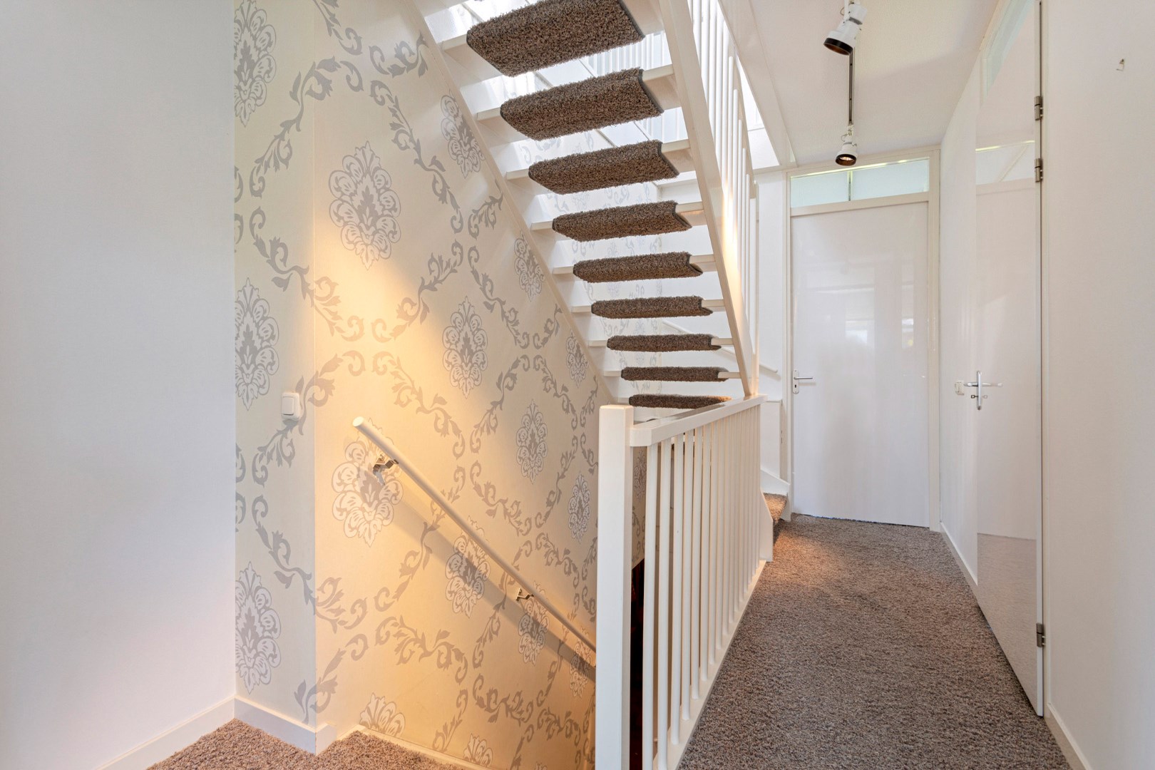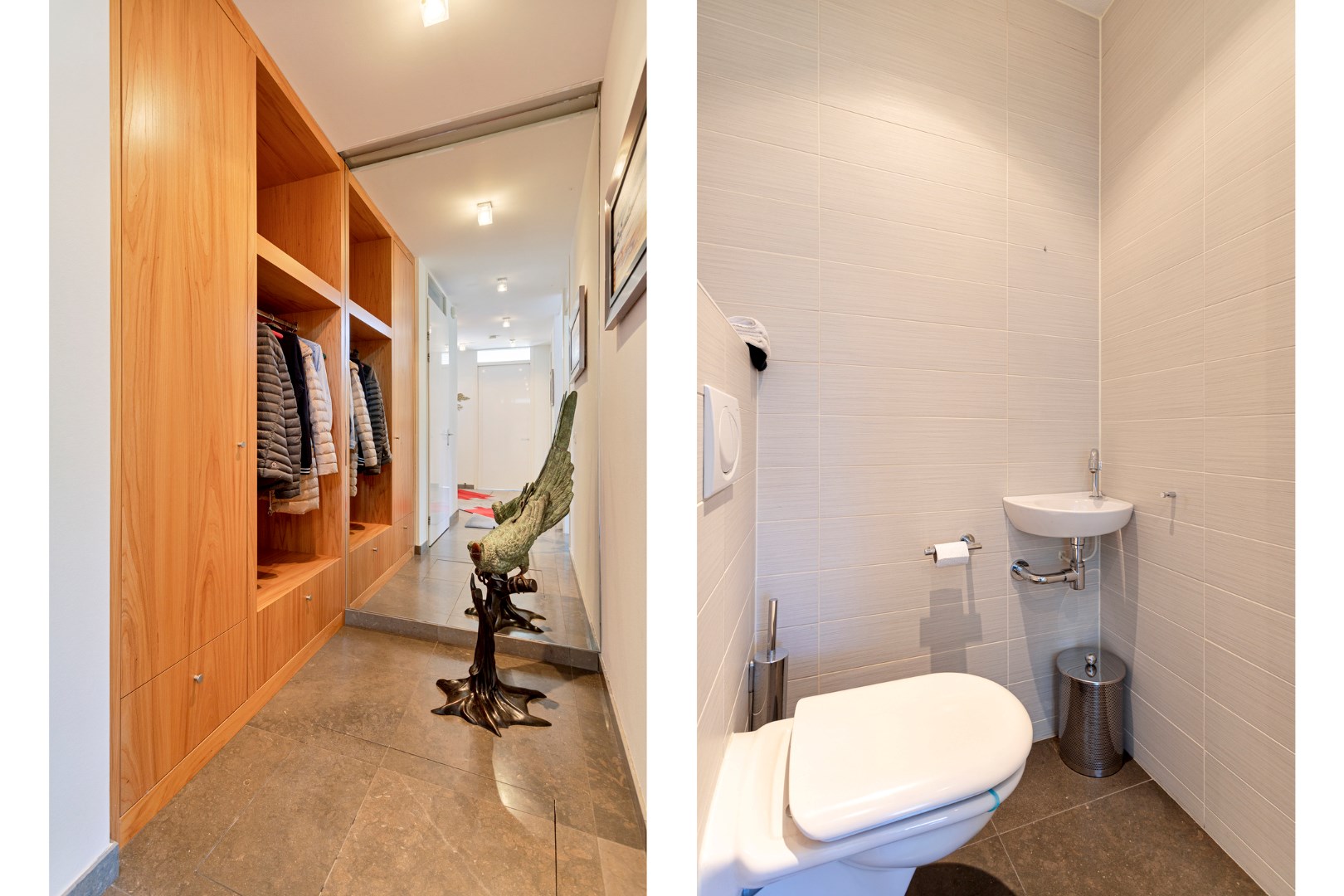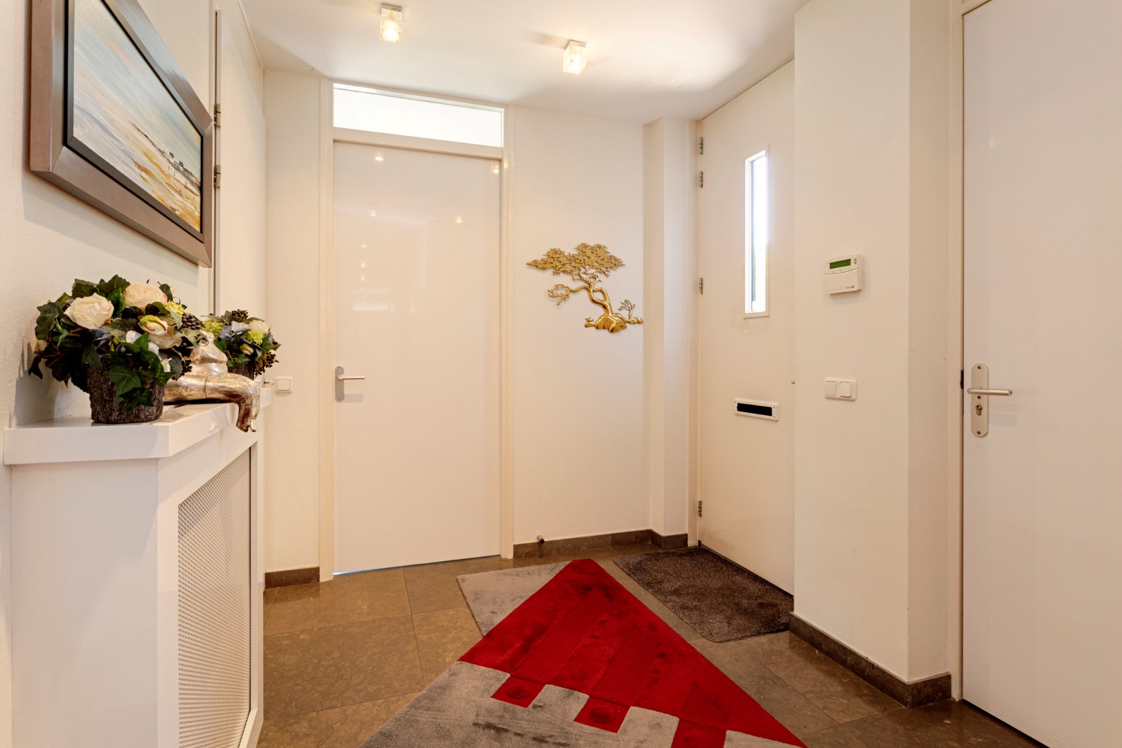 You enter the house via the driveway, which is closed with an electrically opening gate. Spacious hall with wardrobe, meter cupboard, stairs to basement and first floor and access to the living room, dining room and garage.