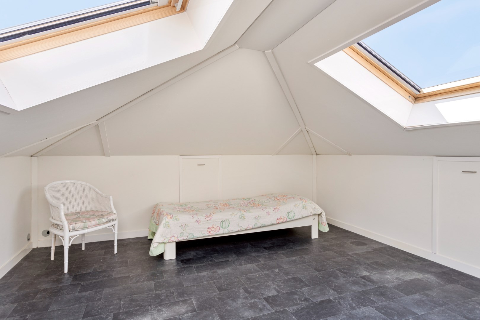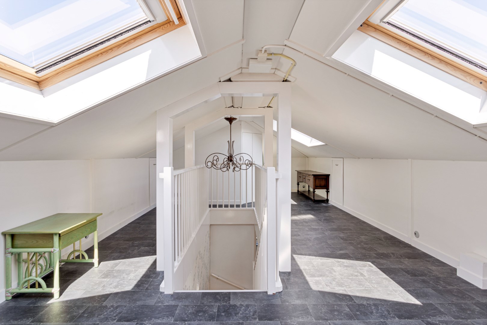 The second level was originally an attic and can now be reached via a fixed staircase. This floor offers a lot of extra storage space and is equipped with 3 velux windows.