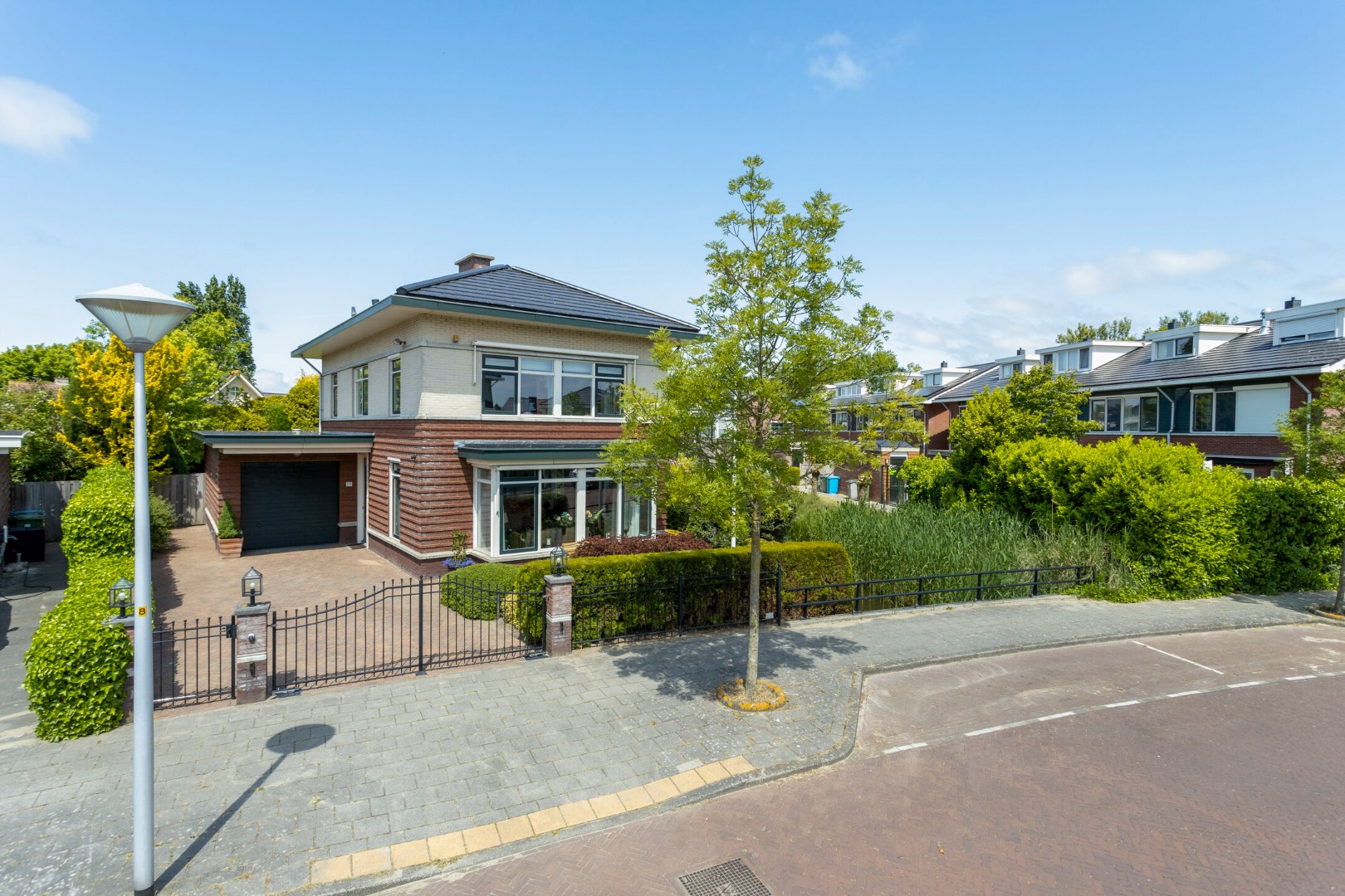 The spacious garden is beautifully landscaped and offers a lot of privacy. At the rear it has several terraces where you can enjoy sun and shade throughout the day. There is sufficient space in the garden house for bicycles, garden tools and other storage. The garden can also be reached through the garage and through a gate at the side of the driveway.