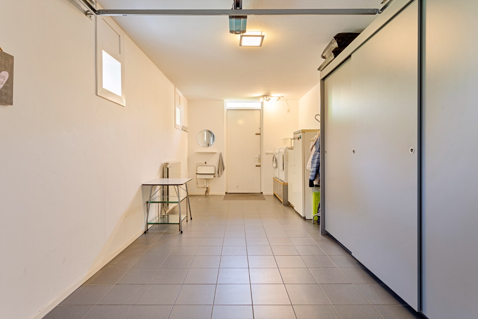 Via de elektrisch bedienbare garagedeur komt u in de garage van 25m2. Hier bevindt zich ook de opstelplaats van de wasmachine en droger en kan een extra koelkast en/of vriezer worden geplaatst. U kunt ook via de garage naar de tuin aan de achterzijde.