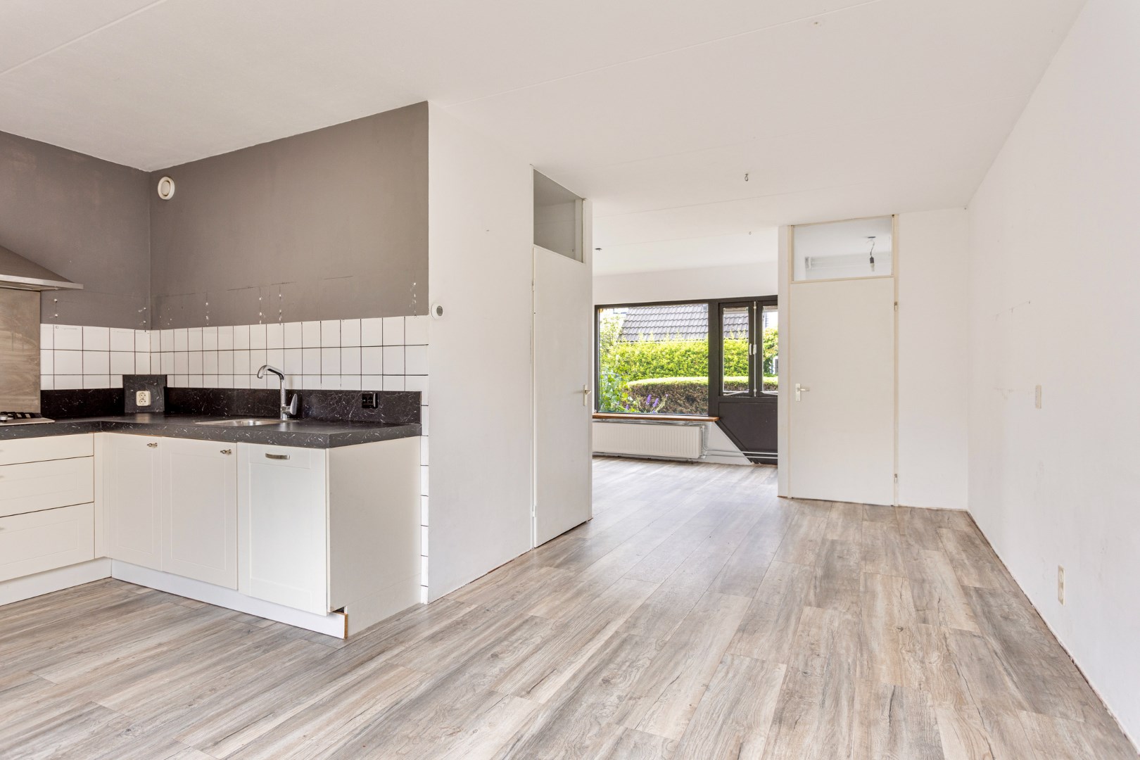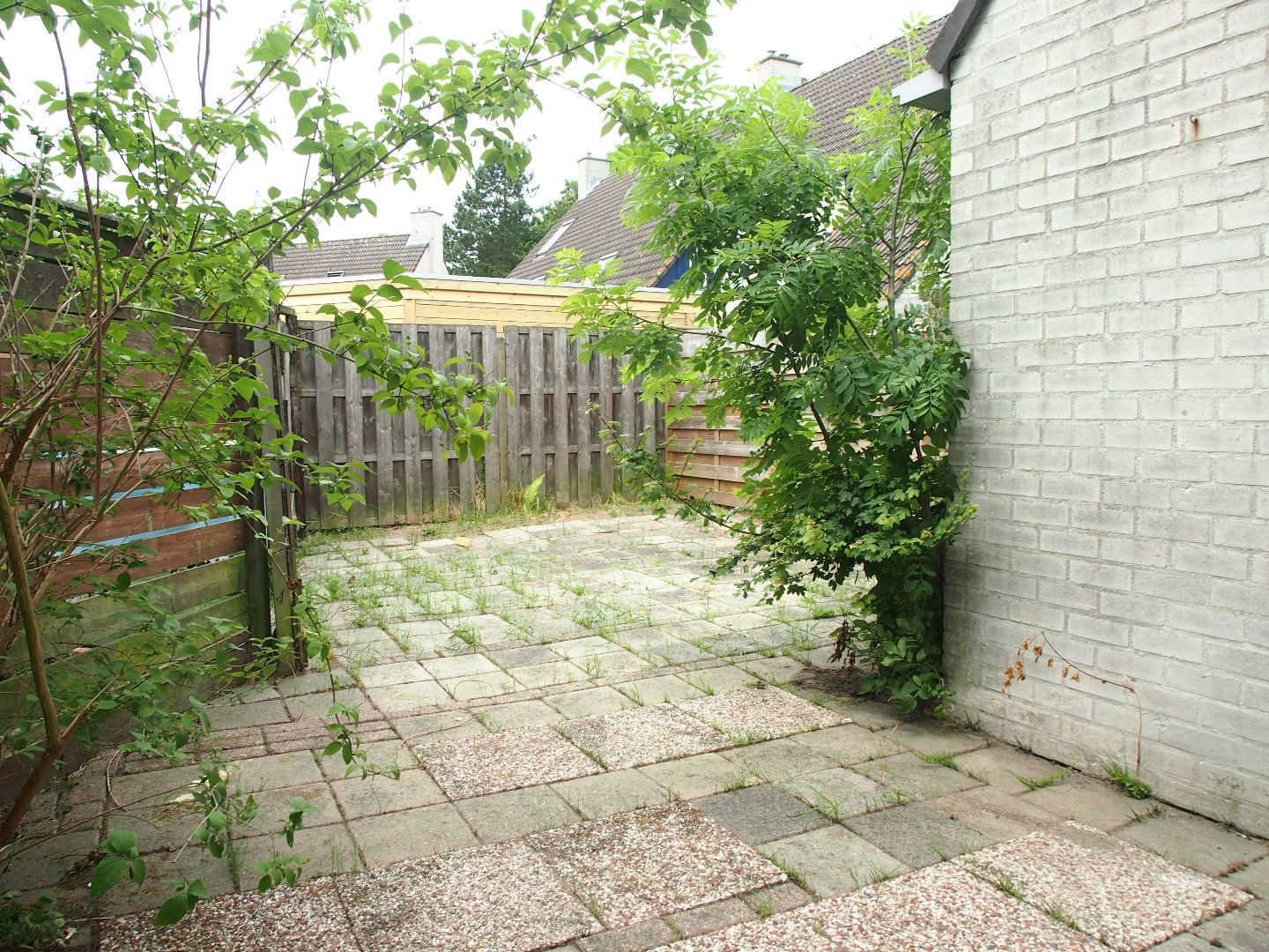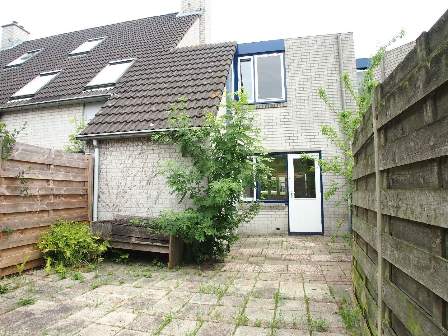 Tussenwoning van 93 m2 met 2 verdiepingen, voor- en achtertuin, open keuken, 3 slaapkamers en een ruime badkamer.