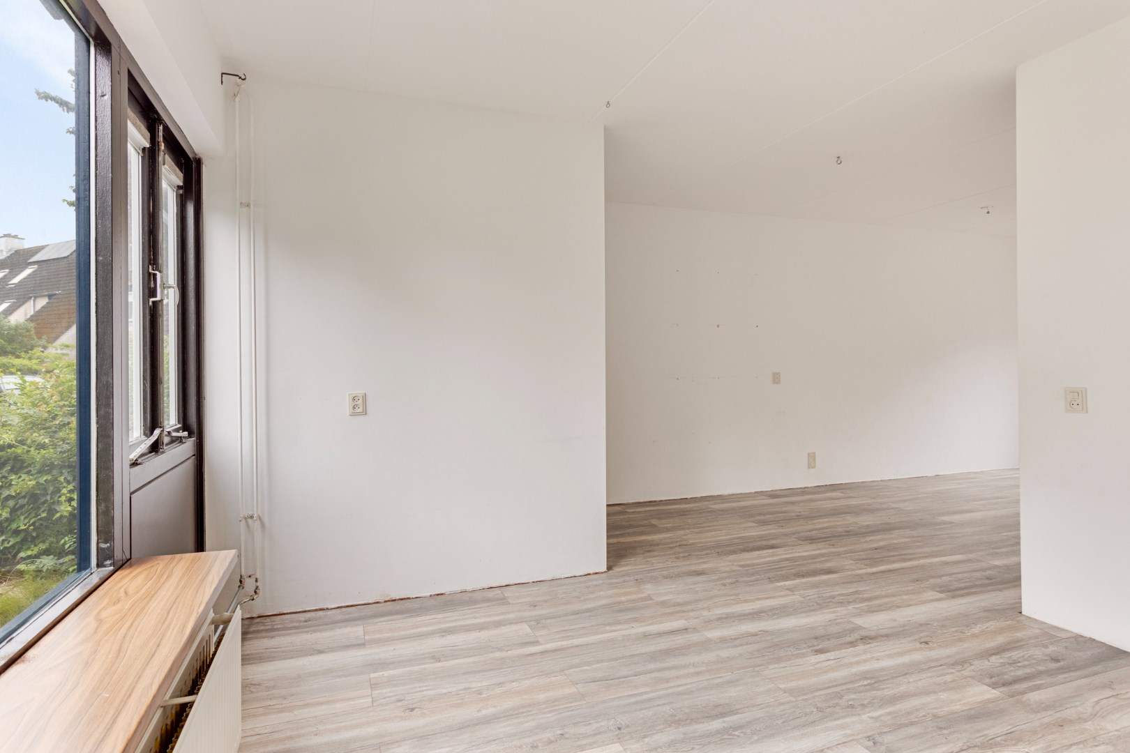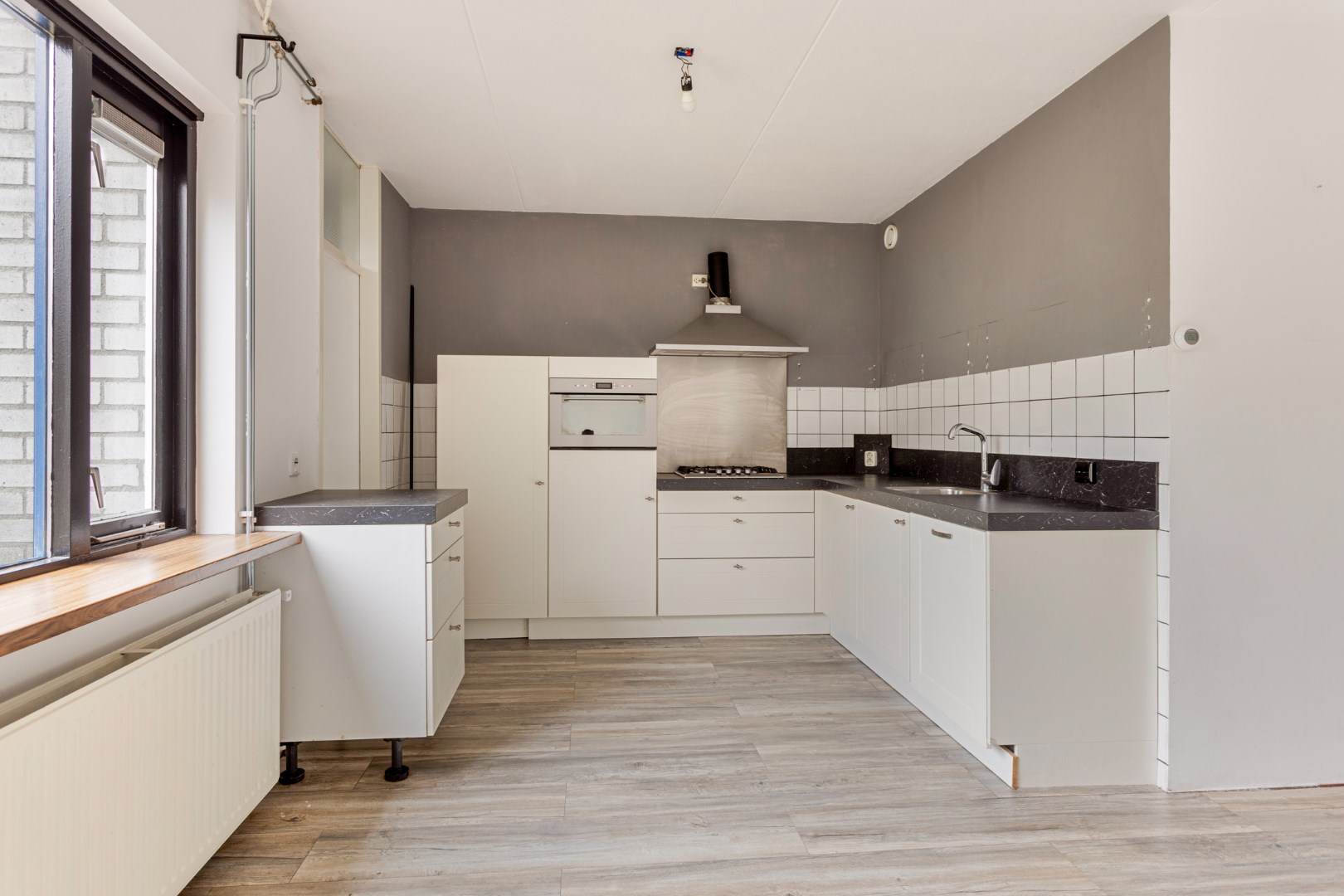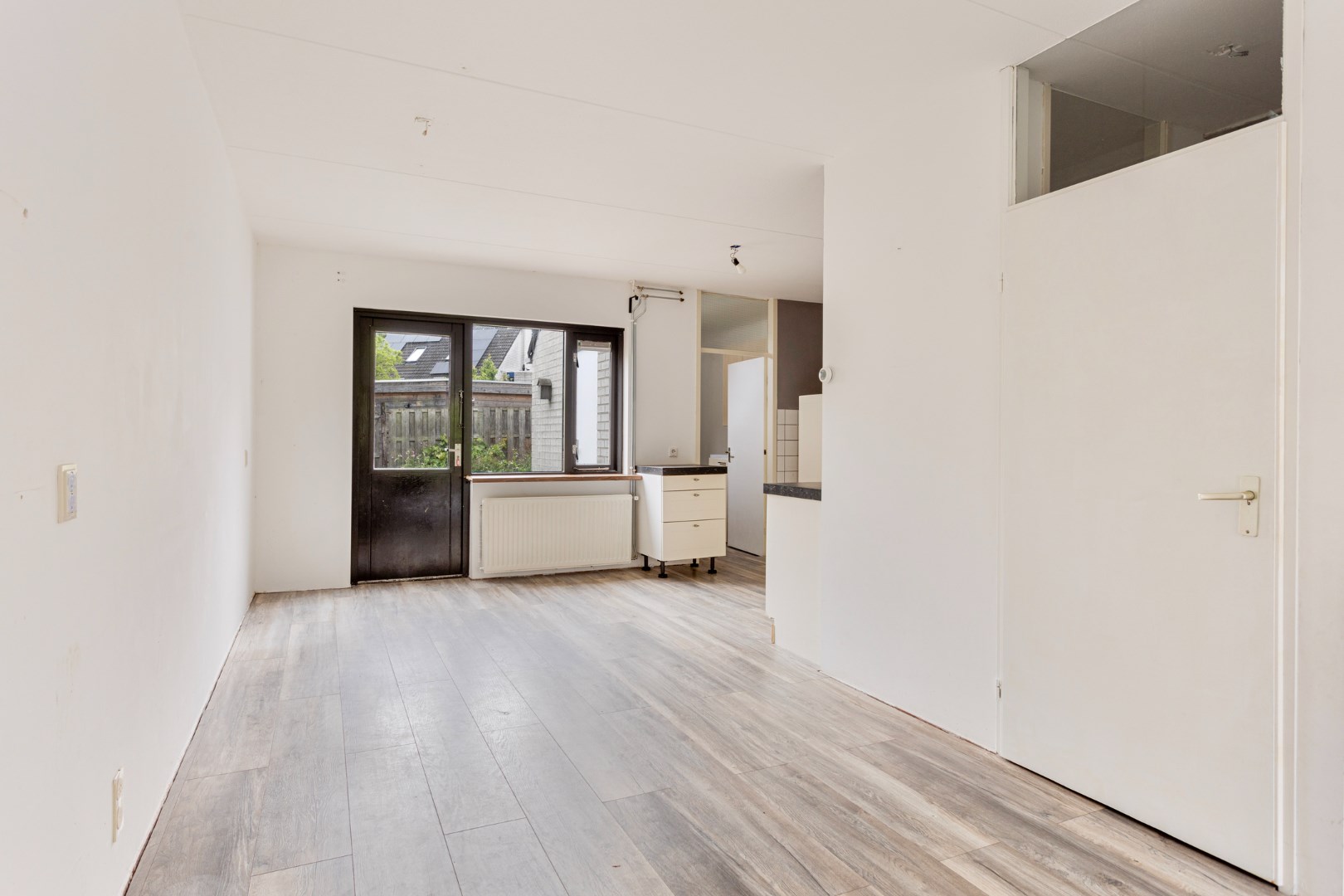Tussenwoning van 93 m2 met 2 verdiepingen, voor- en achtertuin, open keuken, 3 slaapkamers en een ruime badkamer.